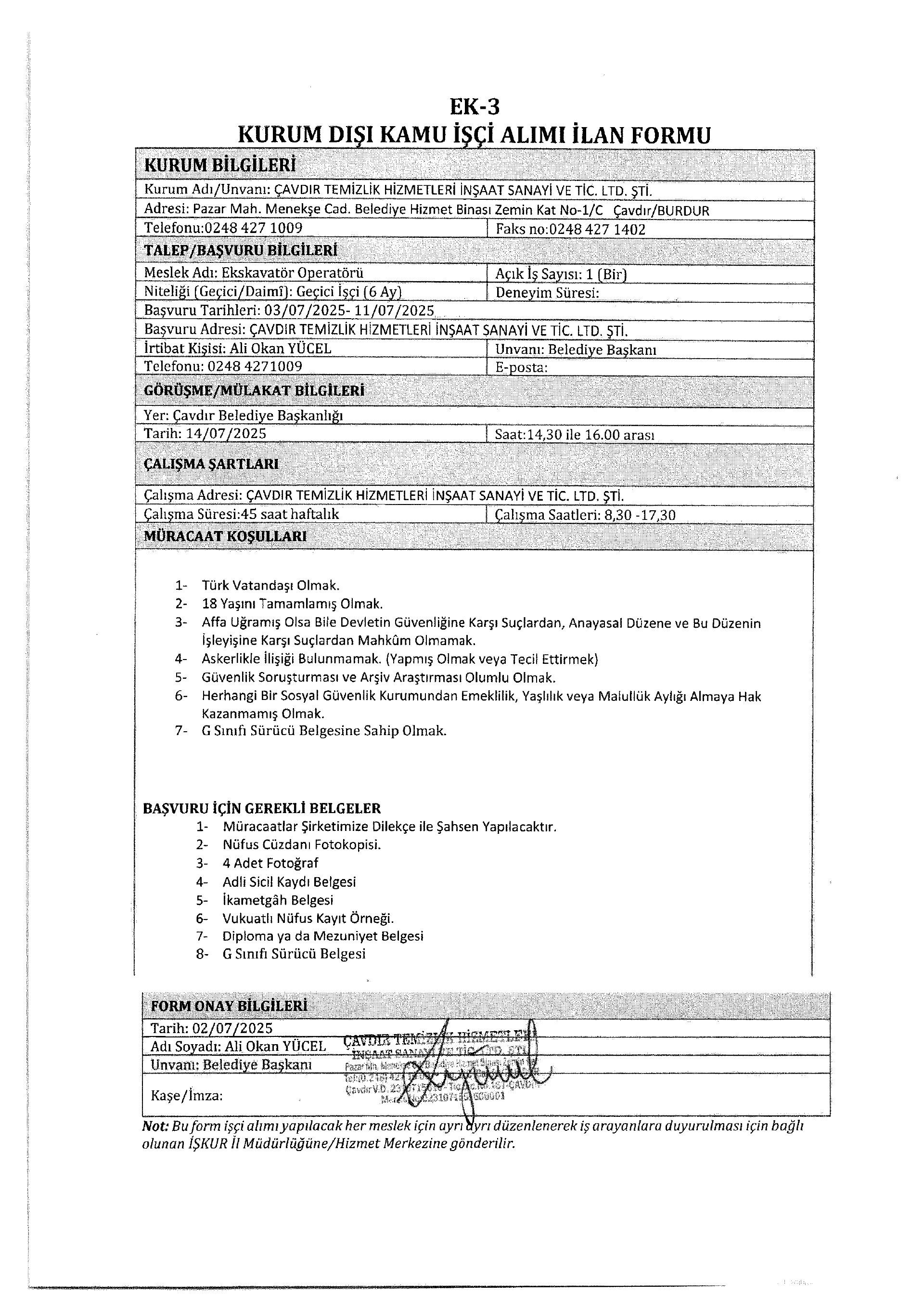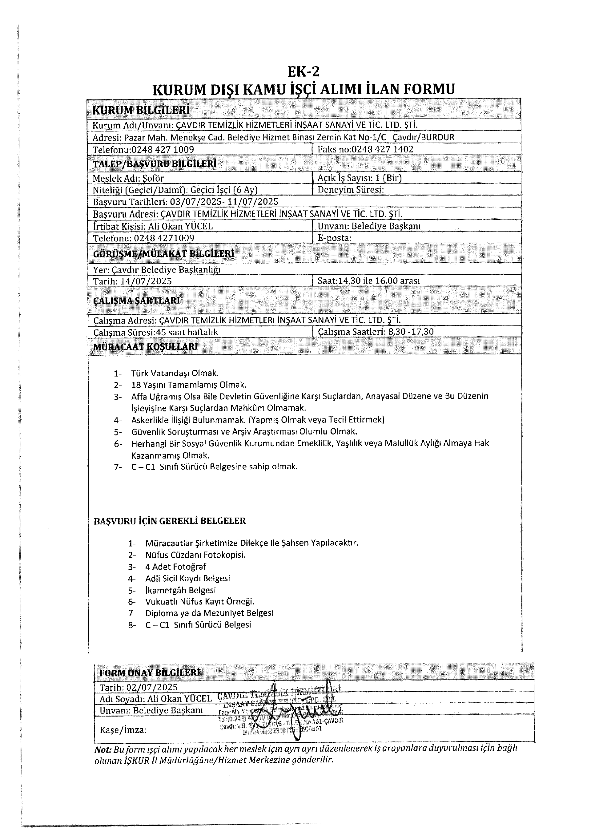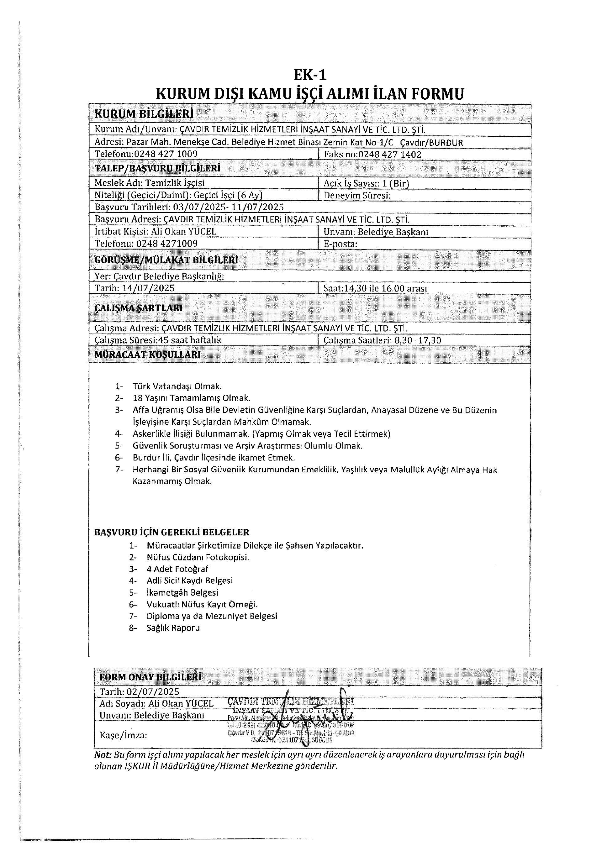 Burdur Çavdır Temizlik 7 İşçi Alacak. Son başvuru tarihi 11 temmuz 2025