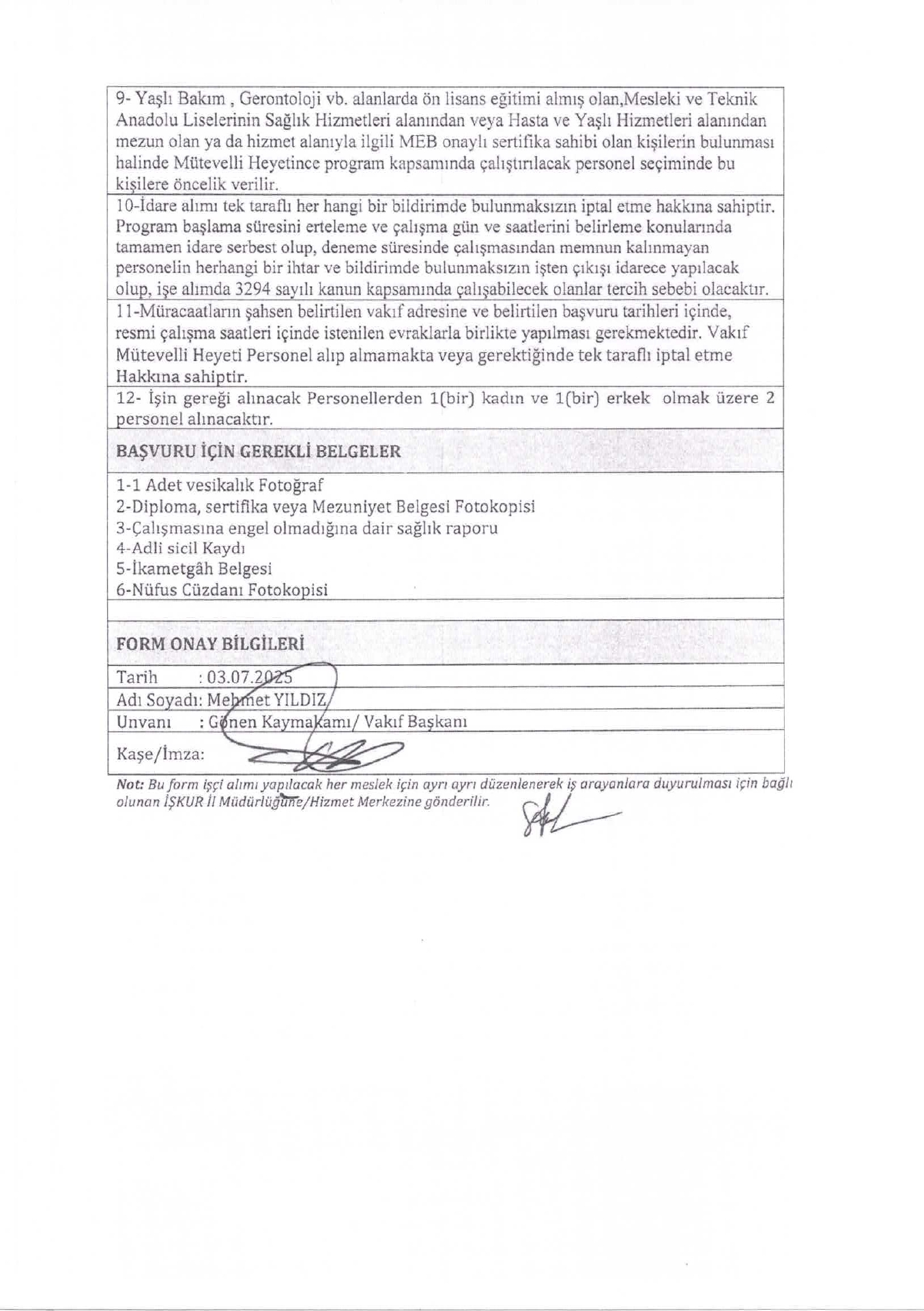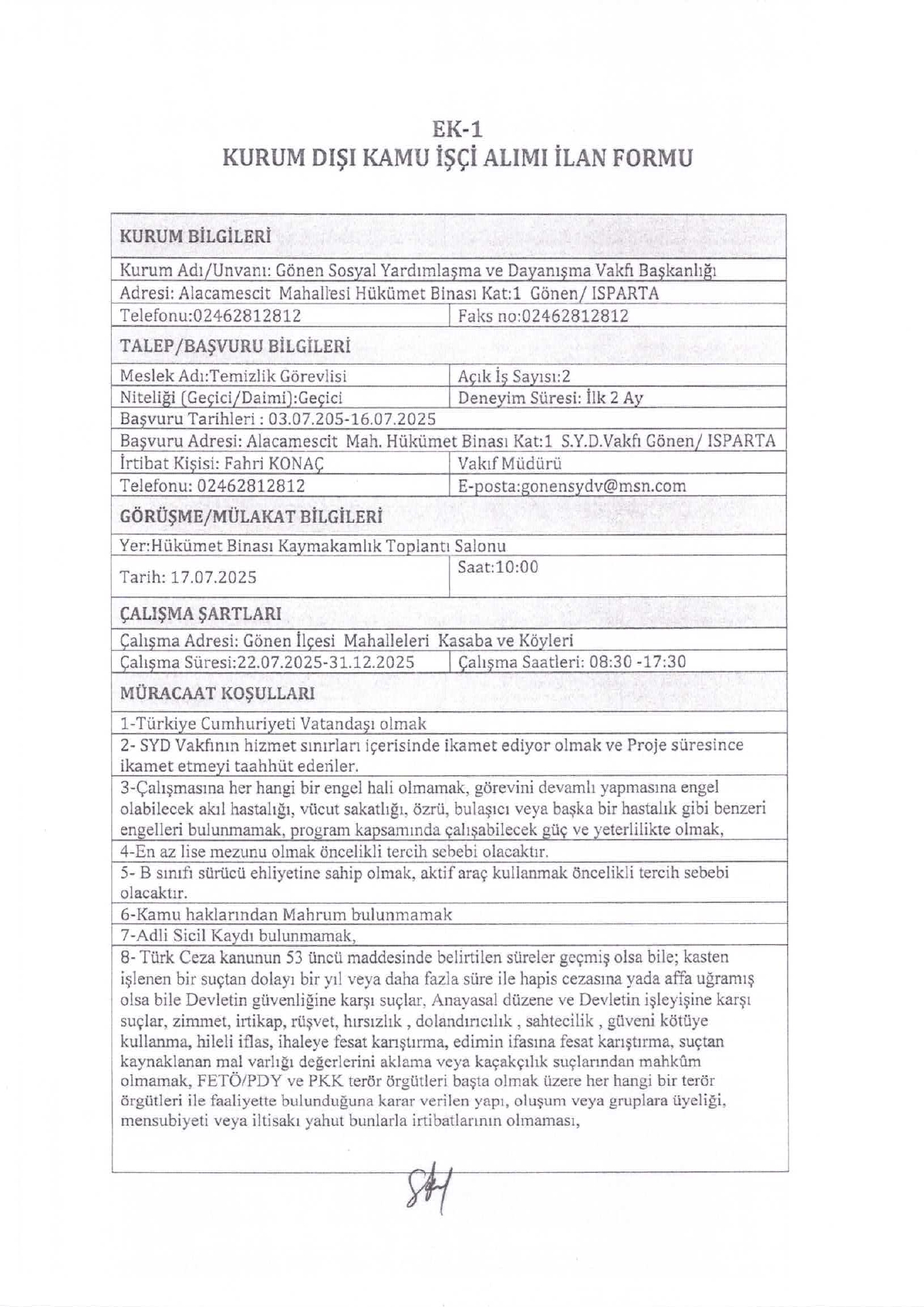 Isparta Gönen SYDV Geçici 2 İşçi Alacak. Son başvuru tarihi 16 temmuz 2025