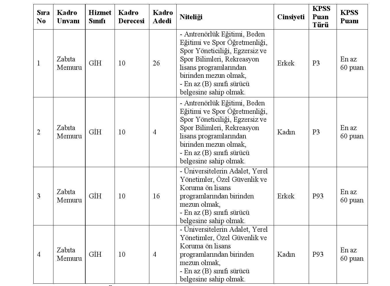 İLK DEFA ATANMAK ÜZERE ZABITA MEMURU ALIM İLANI