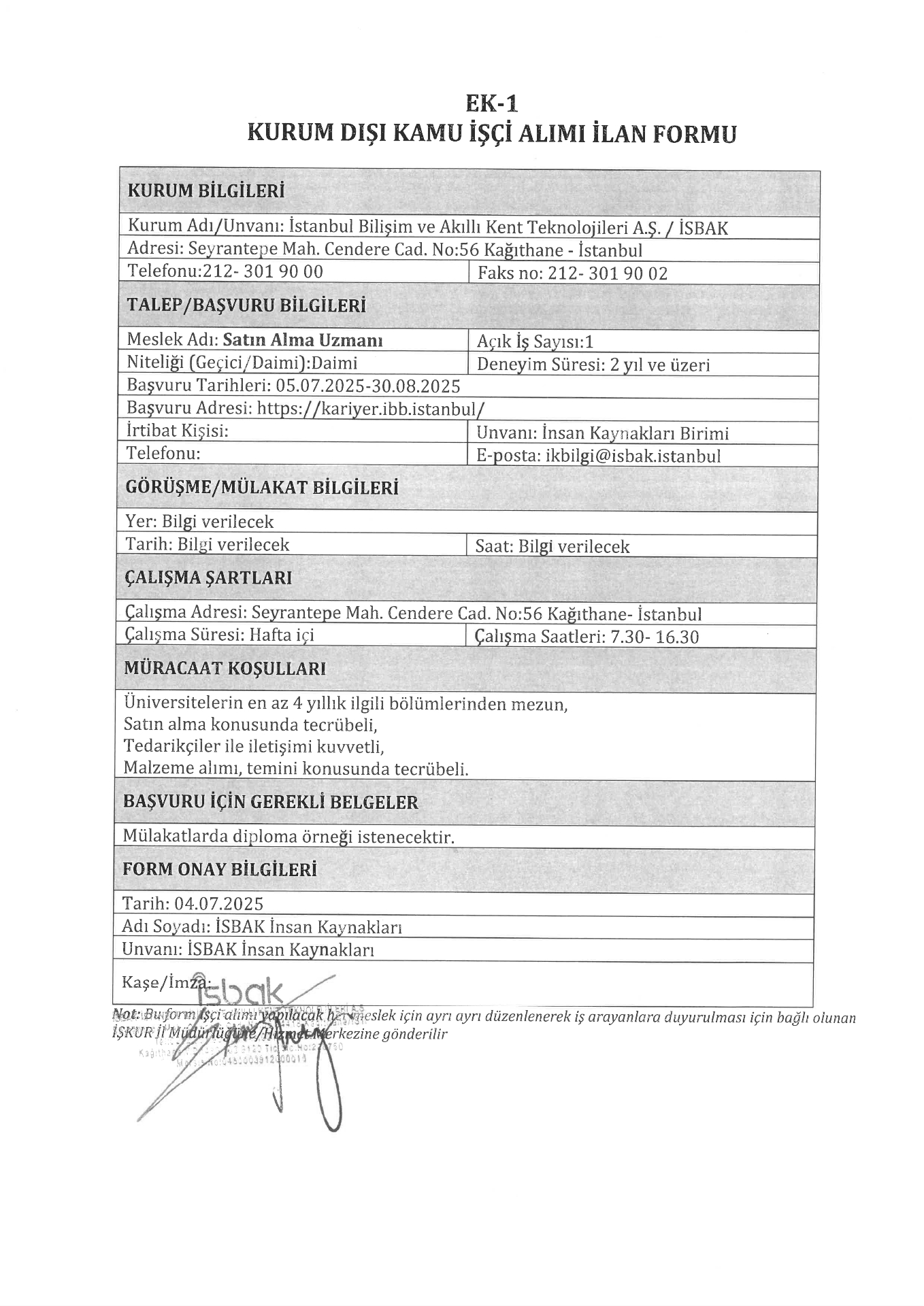 İstanbul Bilişim Akıllı Kent Teknolojileri 1 İşçi Alacak. Son başvuru tarihi 30 ağustos 2025