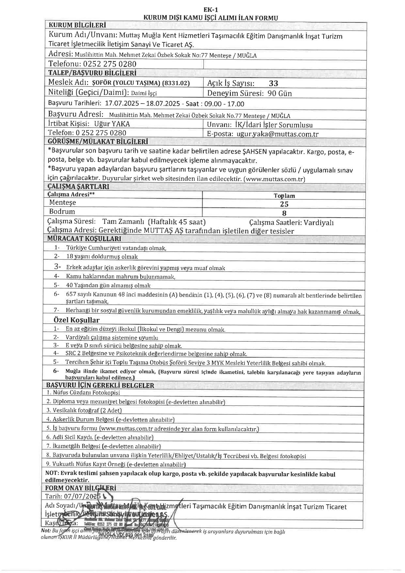 İlan Giriş : 08 Temmuz 2025 23:18, Son Güncelleme : 09 Temmuz 2025 00:17
