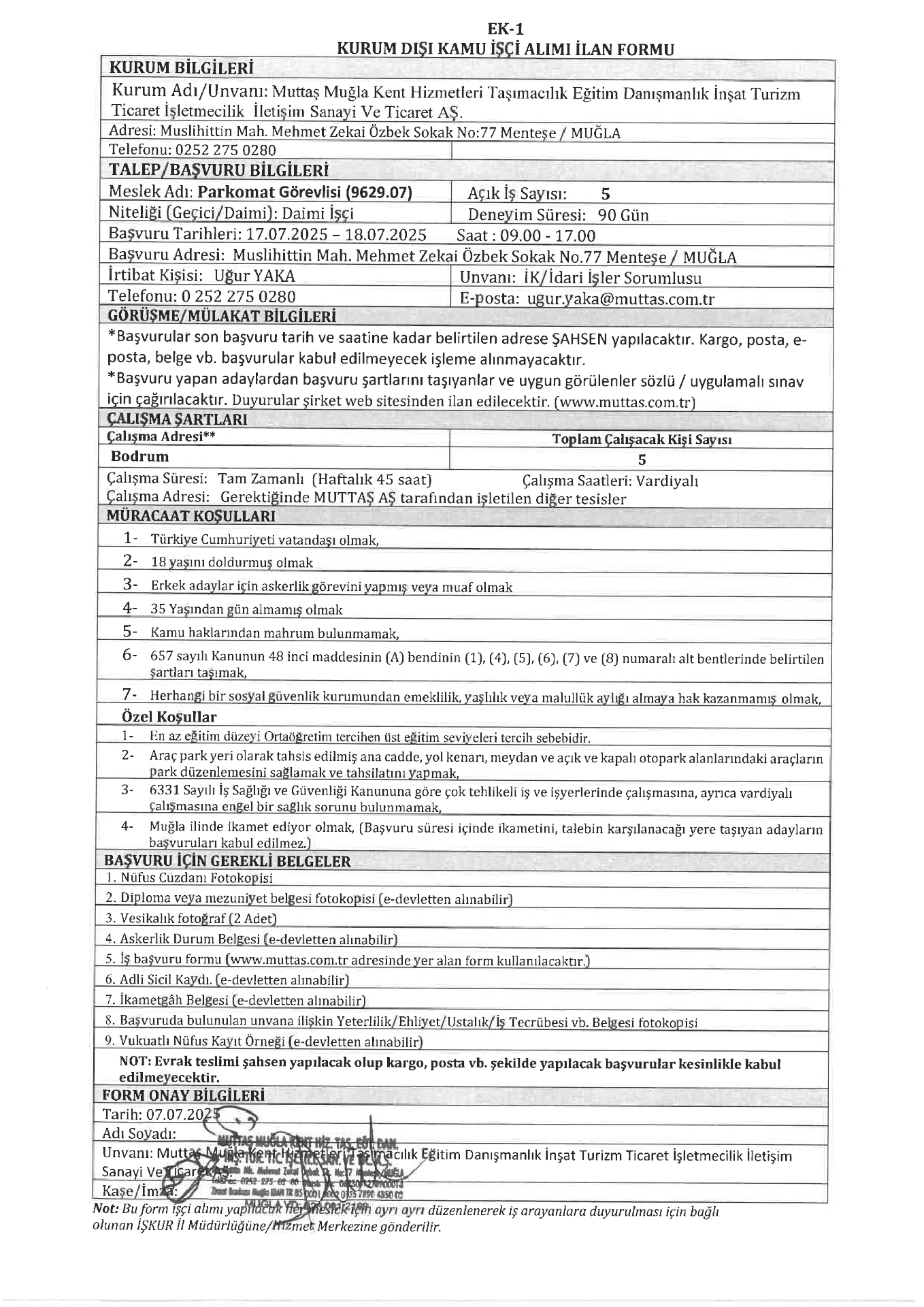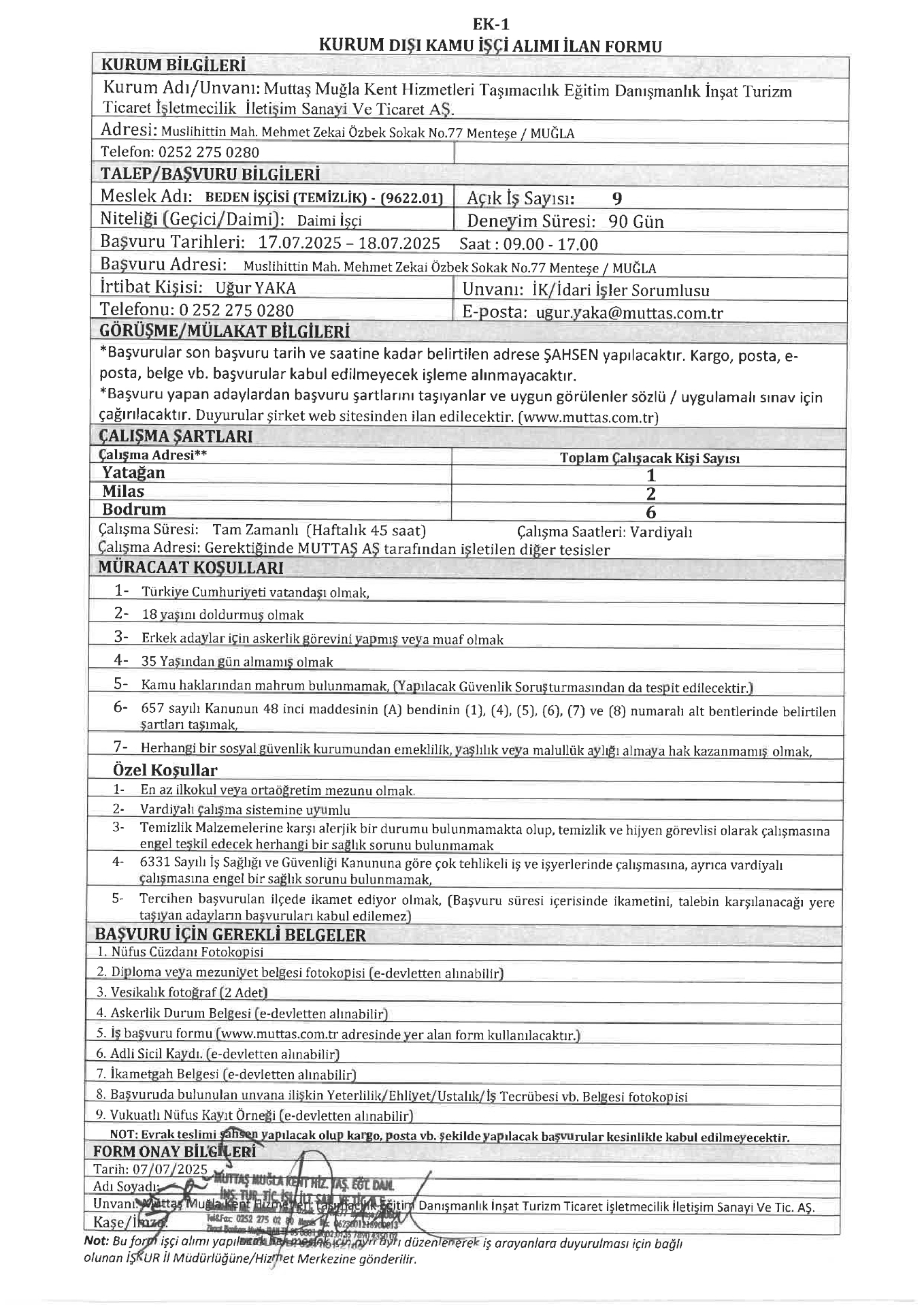 Muğla Muttaş 47 İşçi Alacak. Son başvuru tarihi 18 temmuz 2025