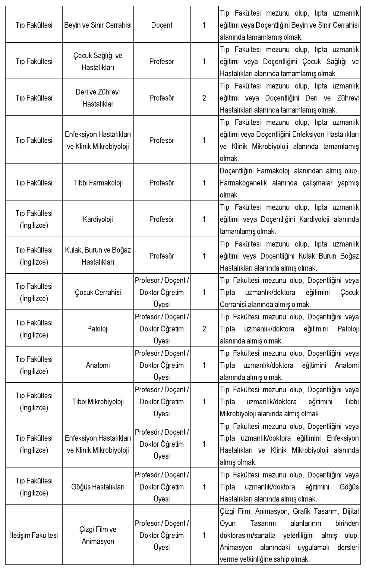 Öğretim Üyesi (Profesör, Doçent, Dr. Öğr. Üyesi) kadrolarına atanmak isteyen adayların;