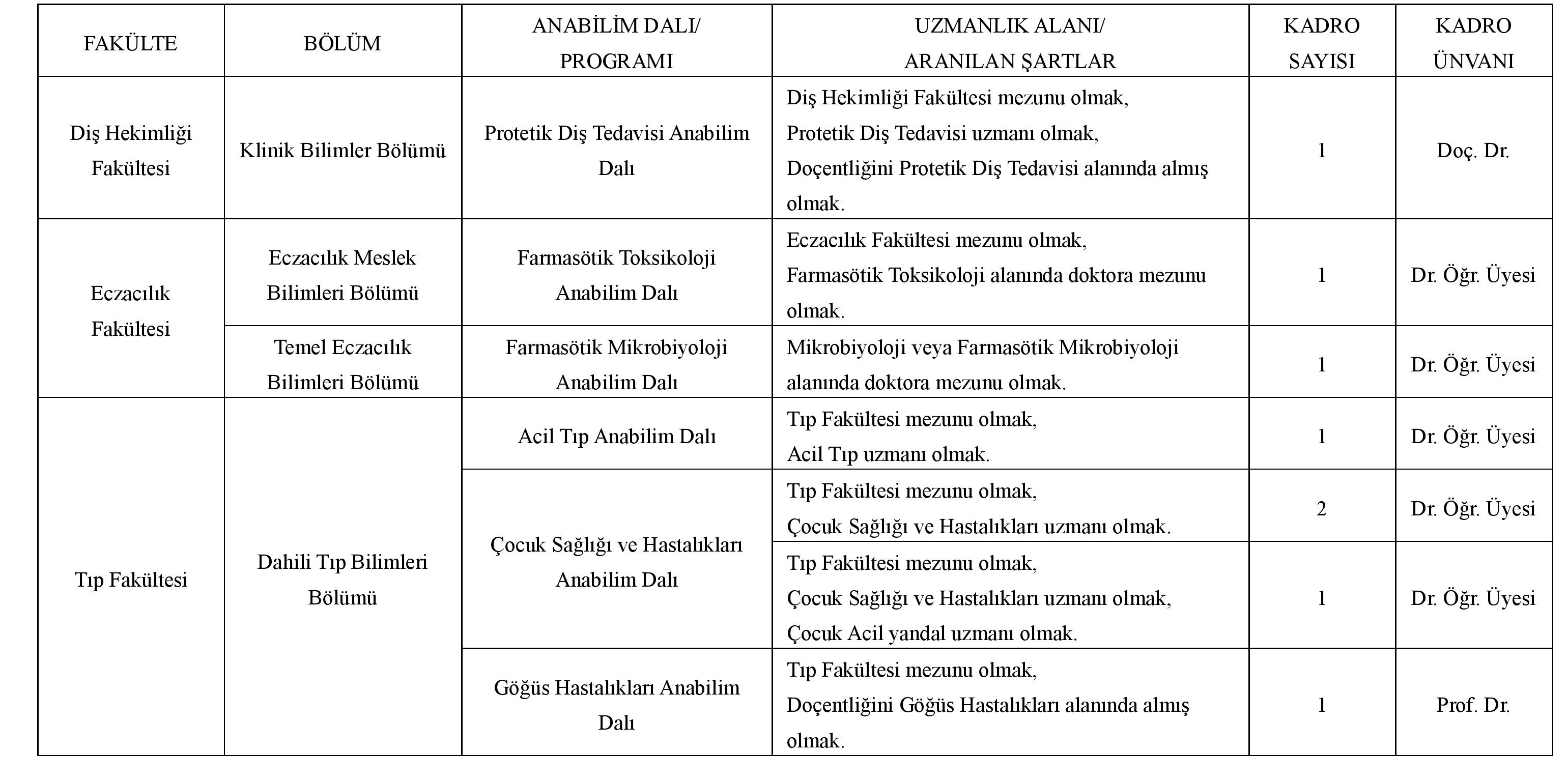 Üniversitemize 2547 sayılı Yükseköğretim Kanunu'nun ve Öğretim Üyeliğine Yükseltilme ve Atanma Yönetmeliği'nin ilgili maddeleri uyarınca "Öğretim Üyesi" alınacaktır.