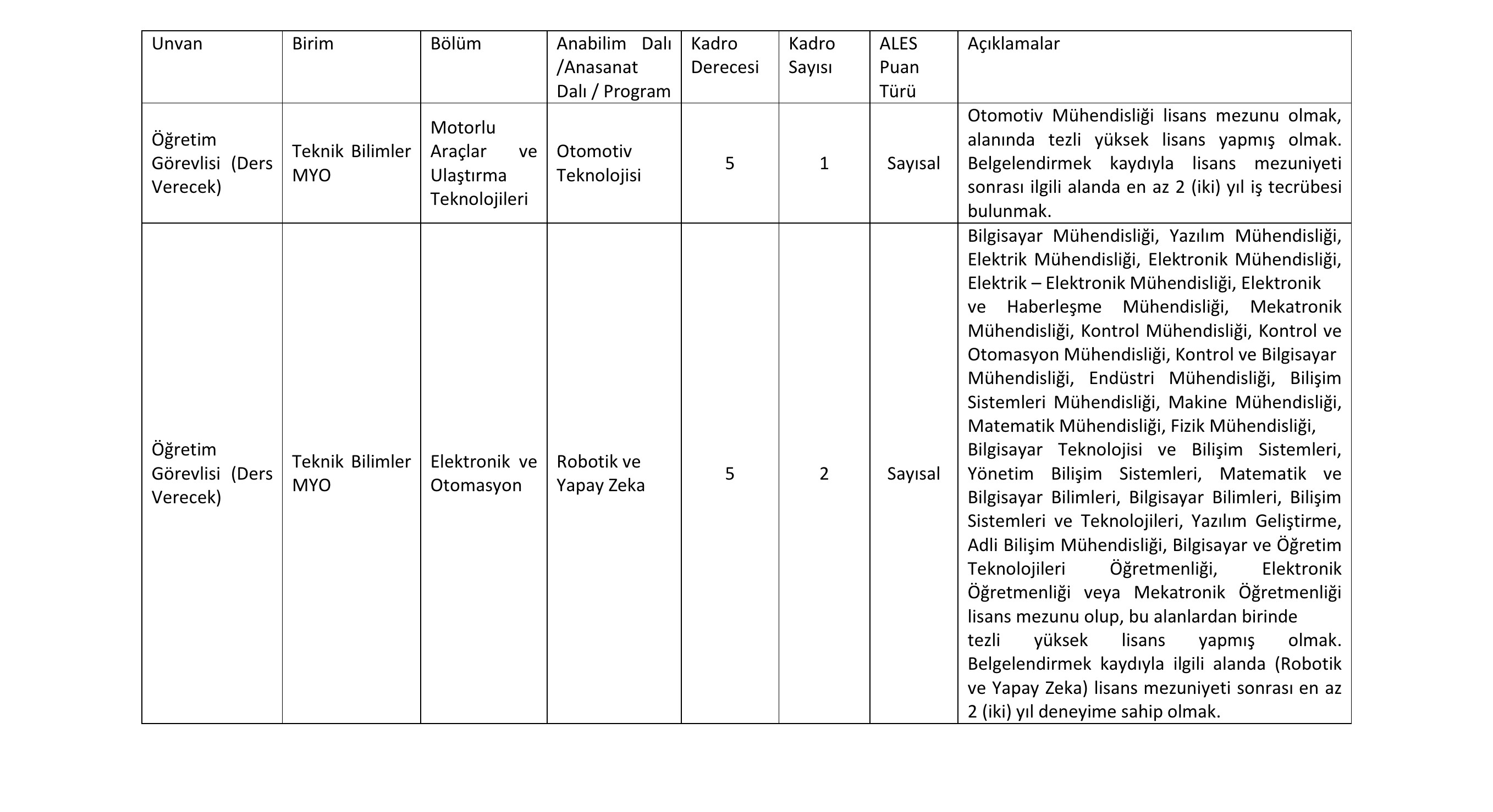 ( Profesör, Doçent ve Doktor Öğretim Üyesi)