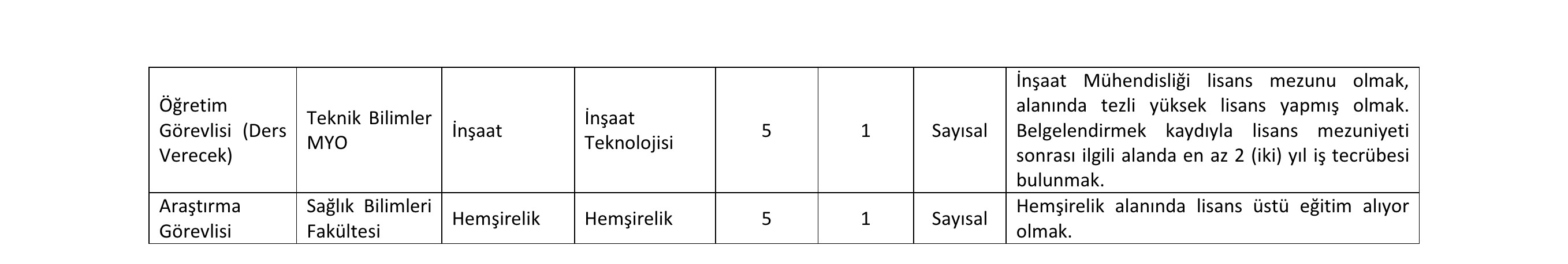 Üniversitemizin aşağıda isimleri yazılı birimlerine, 10.07.2018 tarihli Resmi Gazete'de yayımlanan Genel Kadro ve Usulü Hakkında 2 Sayılı Cumhurbaşkanlığı Kararnamesi, 2547 Sayılı Kanunun ilgili maddeleri ve Öğretim Üyesi Dışındaki Öğretim Elemanı Kadrolarına Yapılacak Atamalarda Uygulanacak Merkezi Sınav ile Giriş Sınavlarına İlişkin Usul ve Esaslar Hakkında Yönetmeliğin ilgili maddelerine göre Öğretim Görevlisi ve Araştırma Görevlisi alımı yapılacaktır.
