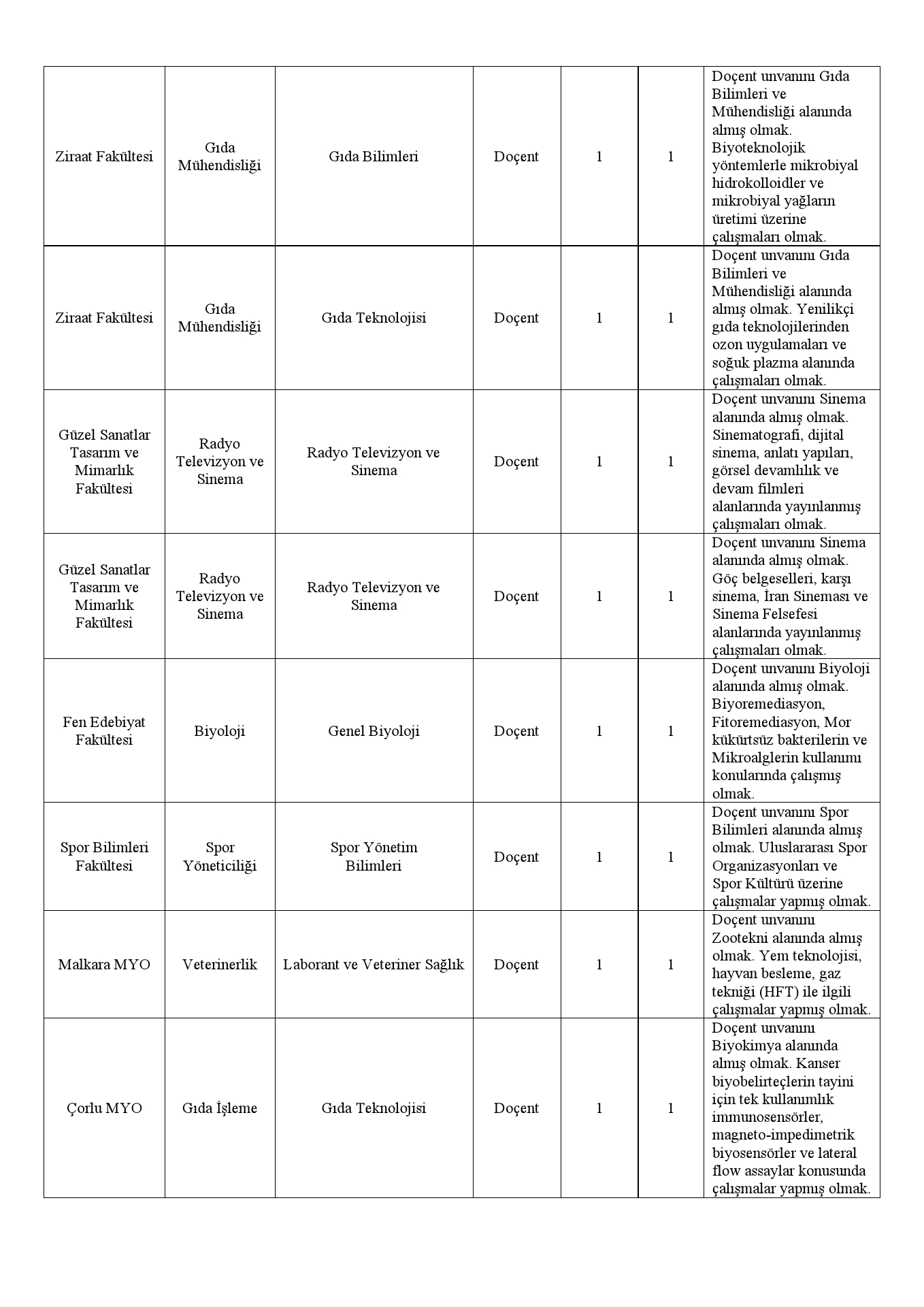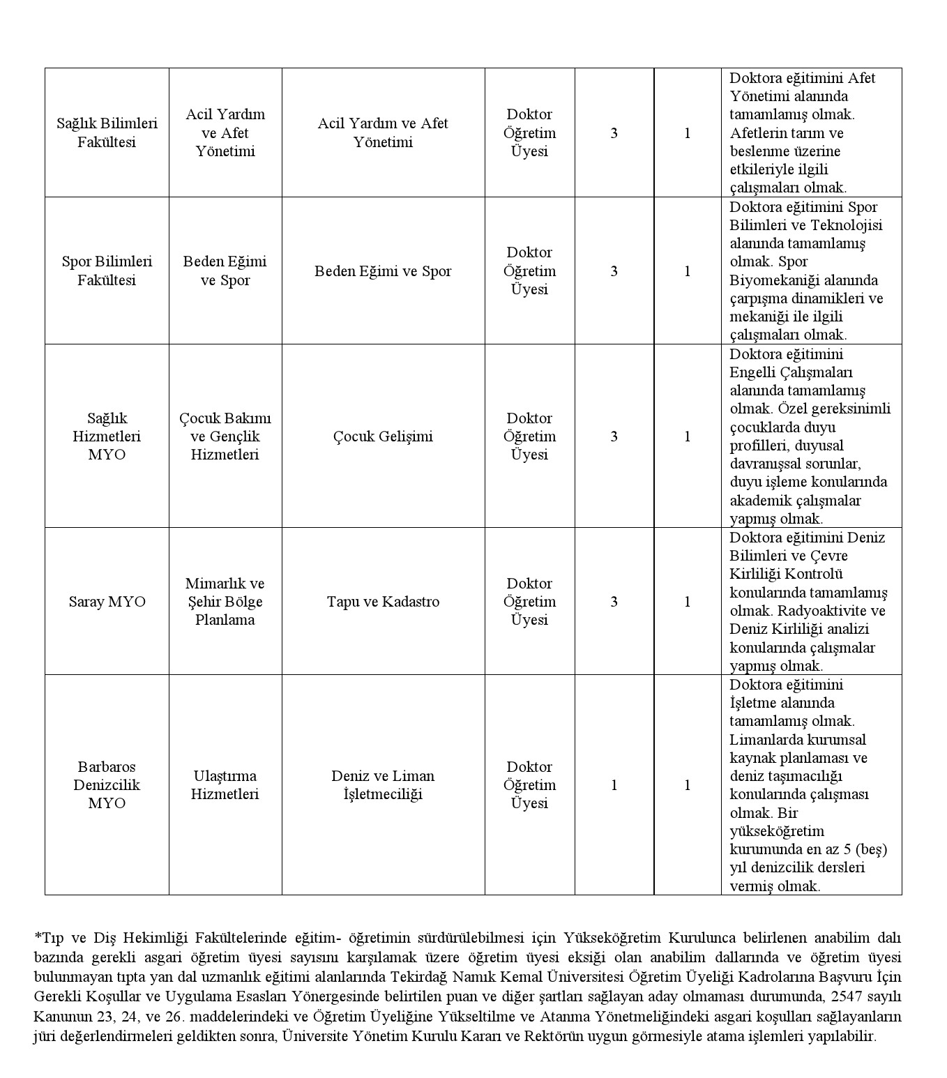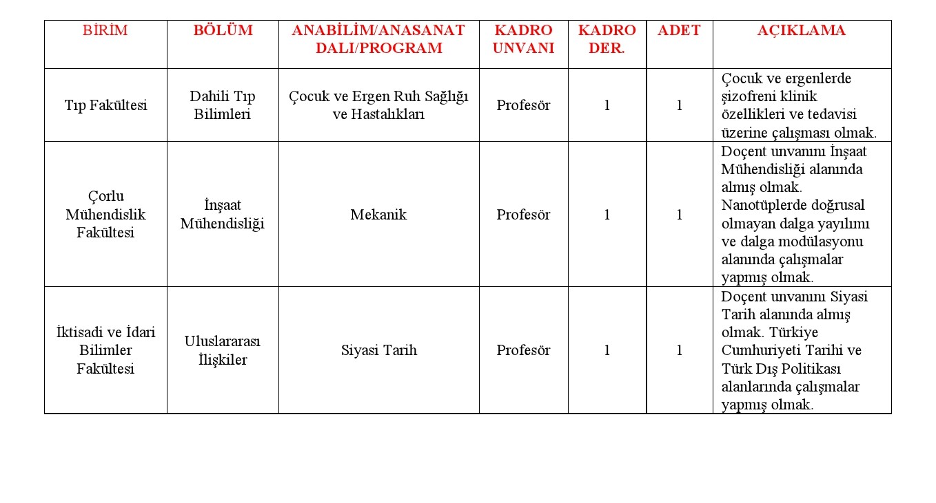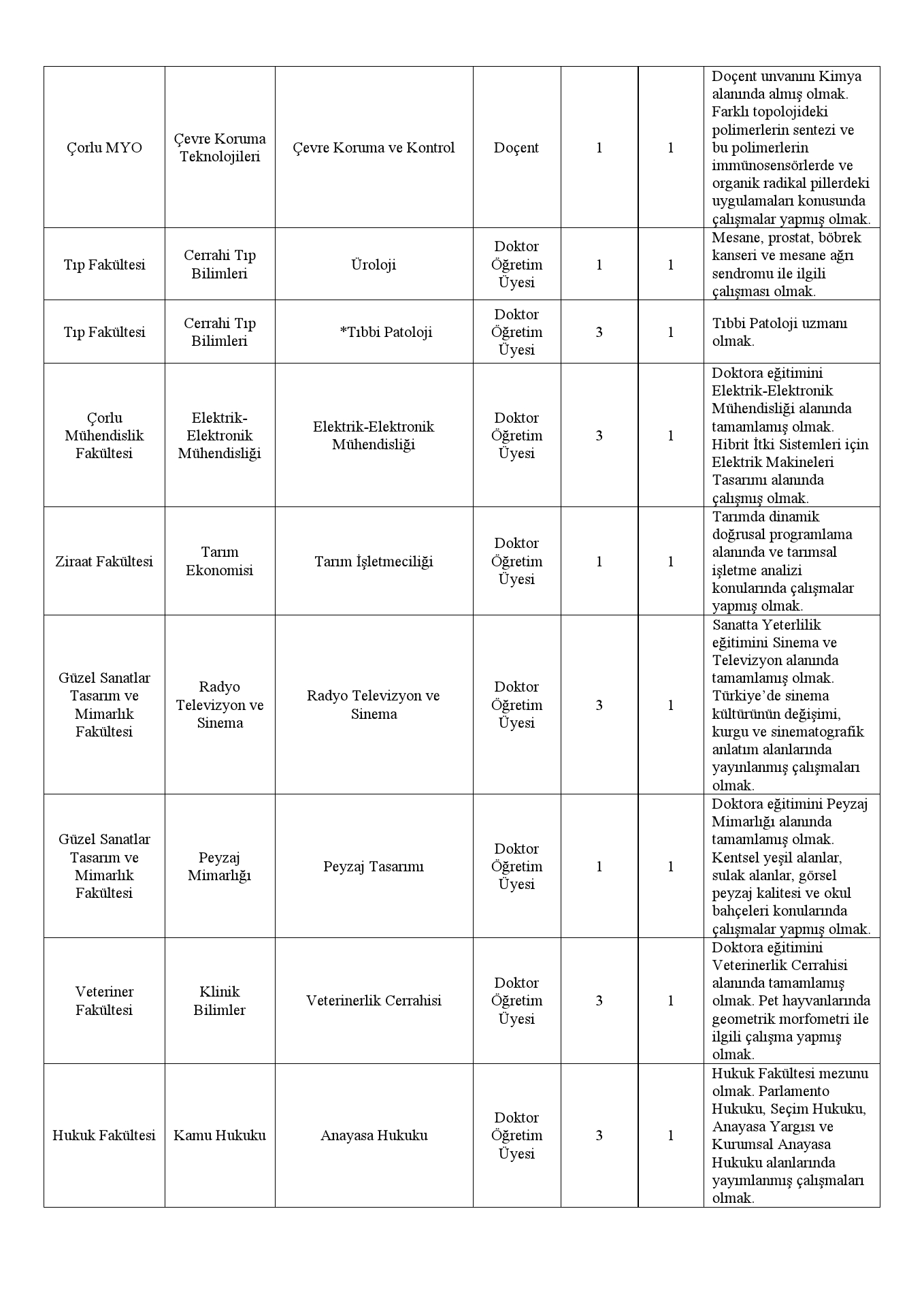 Tekirdağ Namık Kemal Üniversitesi Rektörlüğünden;