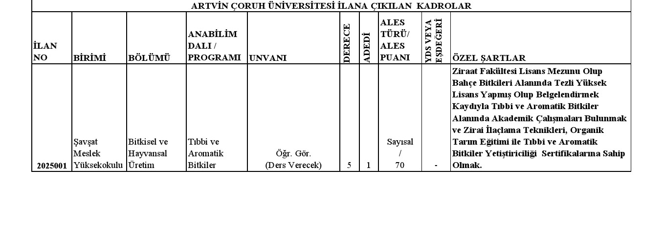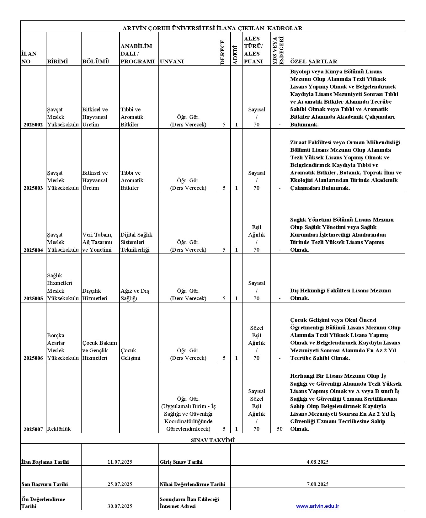 Artvin Çoruh Üniversitesi Öğretim Üyesi Alım İlanı. Son başvuru tarihi 25 temmuz 2025
