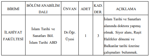 Adayların başvuru dilekçelerinde T.C. Kimlik Numarası, yazışma adresi, e-posta adresi ile telefon numaralarını bildirmeleri gereklidir. İlan şartlarına uygun olmadığı sonradan anlaşılan başvurular geçersiz sayılacaktır. Son başvuru tarihi ilanın Resmi Gazete'de yayınlandığı tarihten itibaren 15 gündür. Doçent unvanı olanlar Doktor Öğretim Üyesi kadrolarına başvuramazlar.