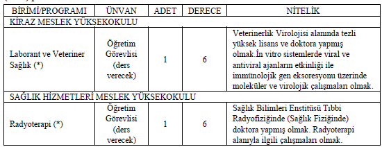 (*) Belirtilen Meslek Yüksekokulu programına ait kadro ilanına başvurularda ALES (SAY) puan türü kullanılacaktır.