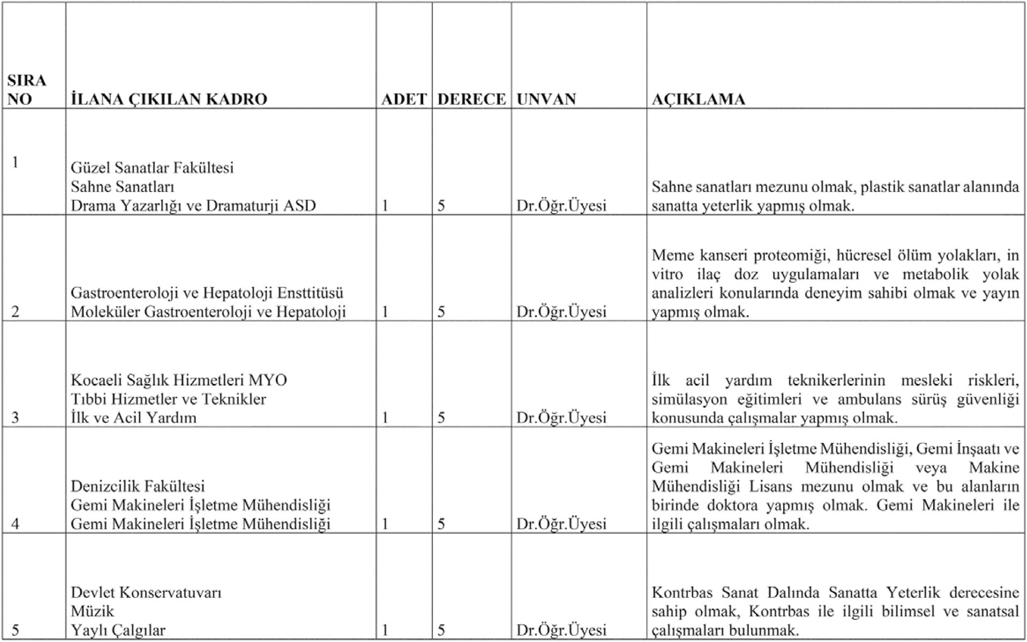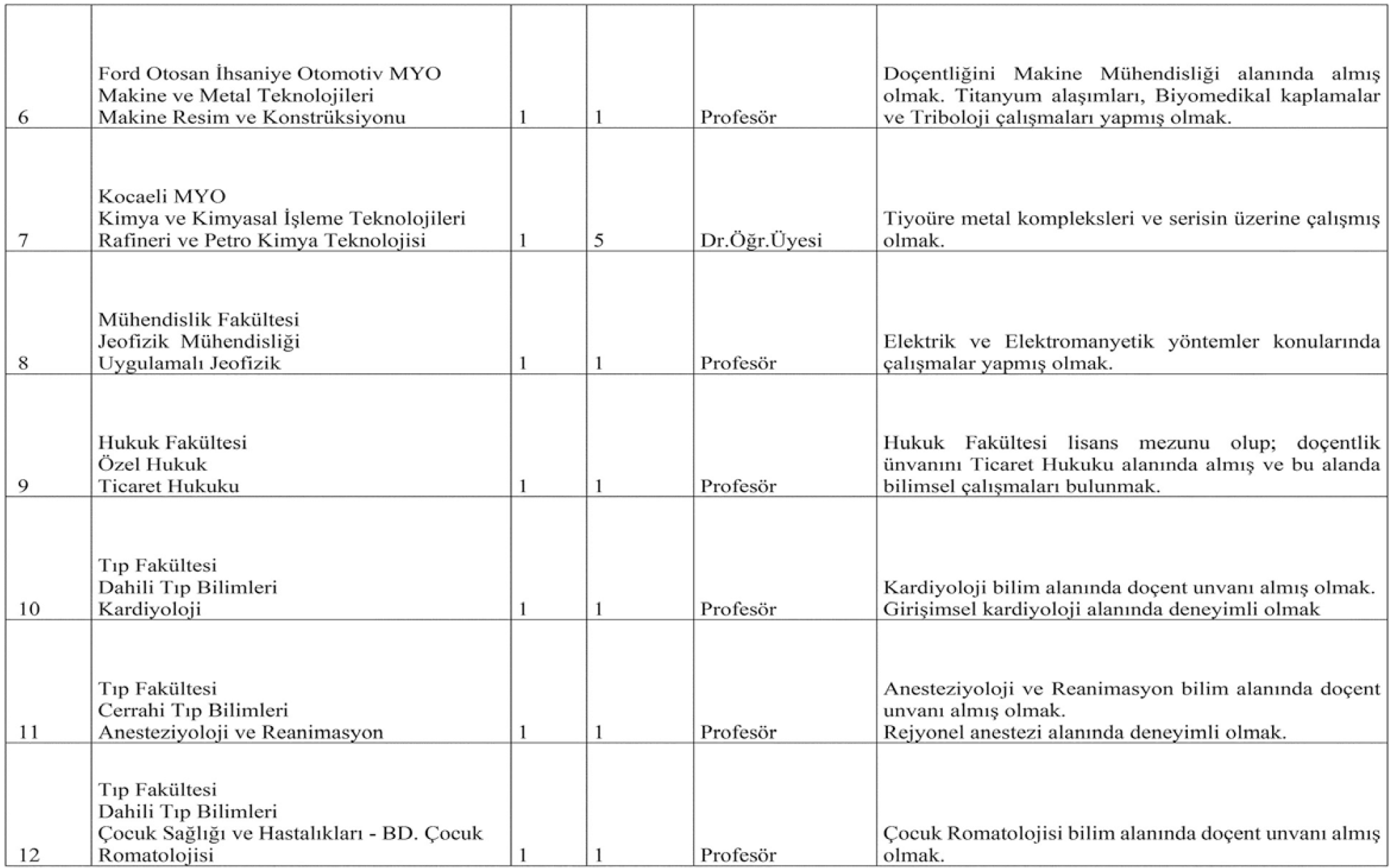 Kocaeli Üniversitesi öğretim üyesi ve öğretim elemanı alacak