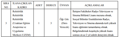 ÖĞRETİM GÖREVLİSİ ALIM İLANI