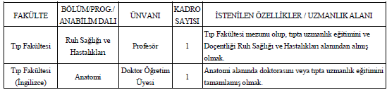 ÖĞRETİM ELEMANI ALIM İLANI