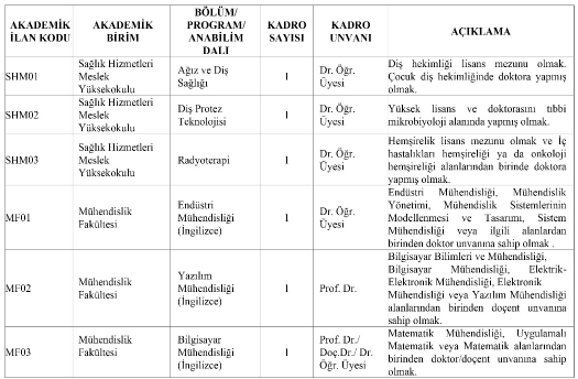 Üniversitemizin aşağıda belirtilen akademik birimlerine,. 2547 sayılı Yükseköğretim Kanunu ve Öğretim Üyeliğine Yükseltilme ve Atanma Yönetmeliğinin ilgili maddeleri uyarınca öğretim üyesi alınacaktır.