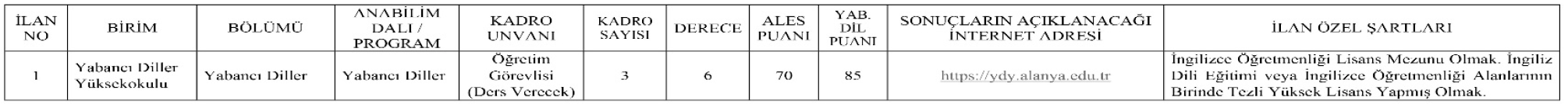 Alanya Alaaddin Keykubat Üniversitesi Rektörlüğünden: