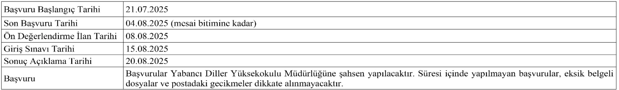 Üniversitemiz birimlerine, 2547 sayılı Kanun'un ilgili maddeleri, 657 sayılı Kanun'un 48. maddesi ile Öğretim Üyesi Dışındaki Öğretim Elemanı Kadrolarına Yapılacak Atamalarda Uygulanacak Merkezi Sınav ile Giriş Sınavlarına İlişkin Usul ve Esaslar Halikında Yönetmeliğin ilgili hükümleri uyarınca Öğretim Görevlisi alınacaktır. Başvuru süresi ilanın Resmi Gazete'de yayımlandığı tarihten itibaren 15 (on beş) gündür.