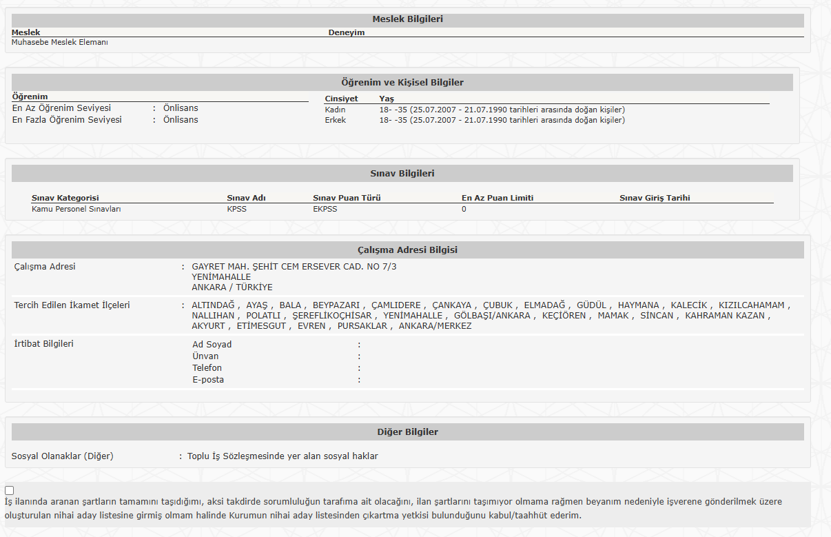 ilanı veren kamu kurum ve kuruluşlarının yasal işlem yapma hakları saklıdır.