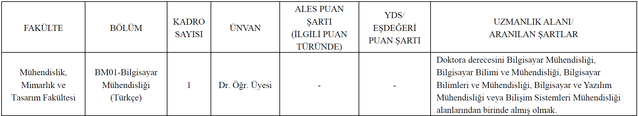 Profesör / Doçent / Doktor Öğretim Üyesi Kadroları İçin