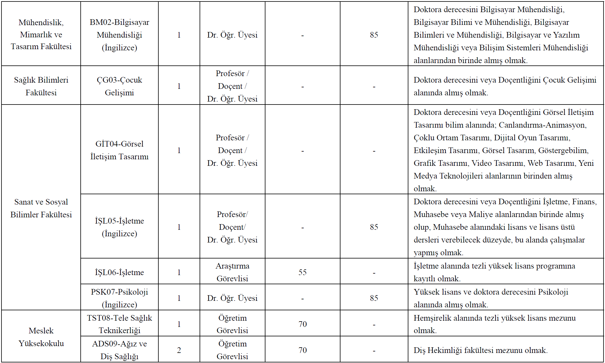 Üniversitemiz Öğretim Elemanı Alımı İlanının Sanat ve Sosyal Bilimler Fakültesi