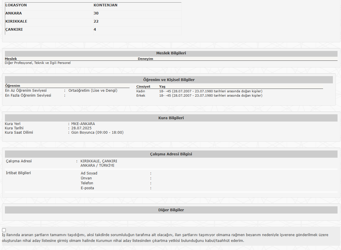 İŞKUR birimlerine ibraz etmeleri halinde ilgili ilana başvuruları yapılır.
