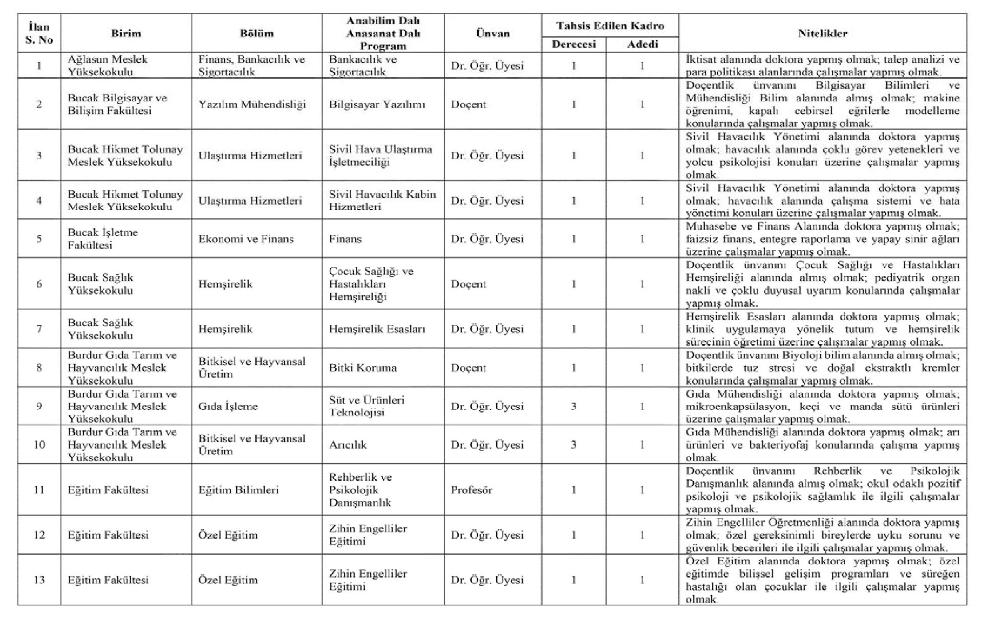 Burdur Mehmet Akif Ersoy Üniversitesi Öğretim Üyesi Alım İlanı. Son başvuru tarihi 11 ağustos 2025
