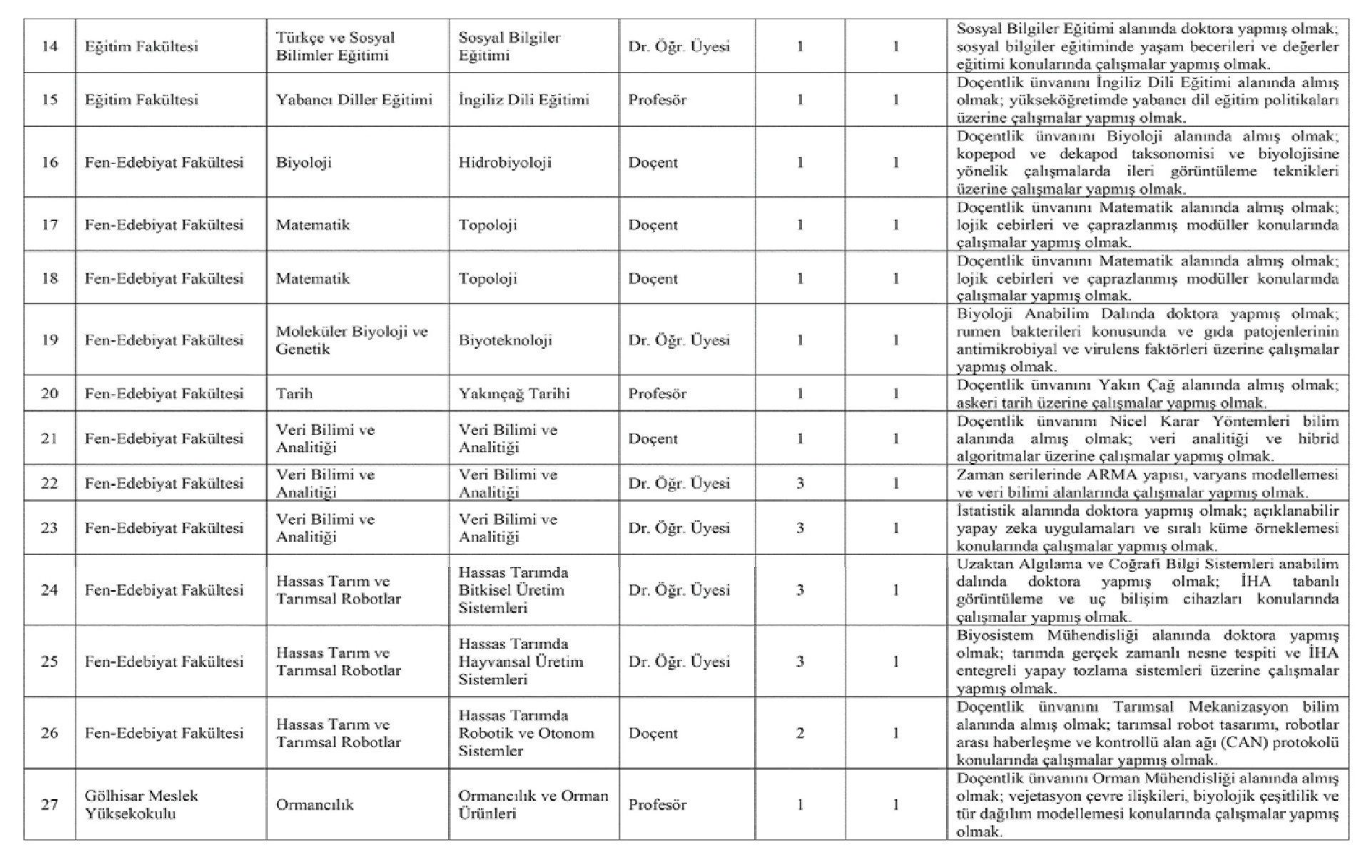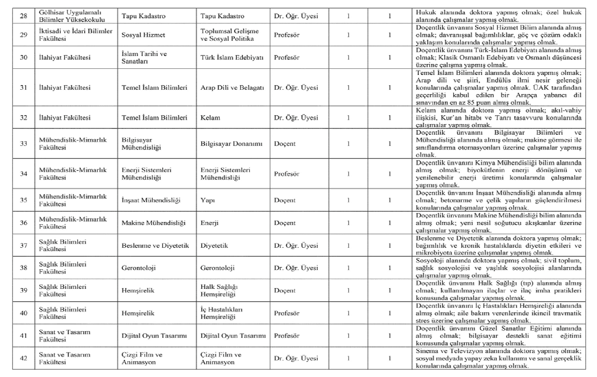 2 Kasım 2018 tarihli vc 30583 sayılı Resmi Gazete'de yayımlanan "Devlet Yükseköğretim Kuramlarında Öğretim Elemanı Norm Kadrolarının Belirlenmesine ve Kullanılmasına İlişkin Yönetmelik" kapsamında. Üniversitemiz çeşitli birimlerine; 2547 sayılı Yükseköğretim Kanunu, 2914 sayılı Yükseköğretim Personel Kanunu, Öğretim Üyeliğine Yükseltilme vc Atanma Yönetmeliği vc Burdur Mehmet Akif Ersoy Üniversitesi Öğretim Üyeliği Kadrolarına Başvuru Koşulları vc Uygulama İlkeleri Hakkında Yönergesinin ilgili hükümleri uyarınca öğretim üyesi alınacaktır.