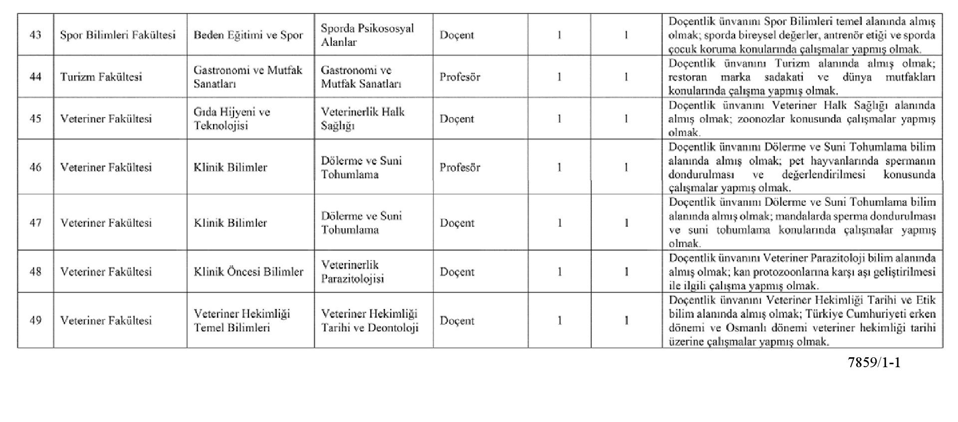 11. Profesör kadrosundakiler doçent kadrosuna, doçent unvanını alanlar ise doktor öğretim üyesi kadrosuna başvuramazlar.