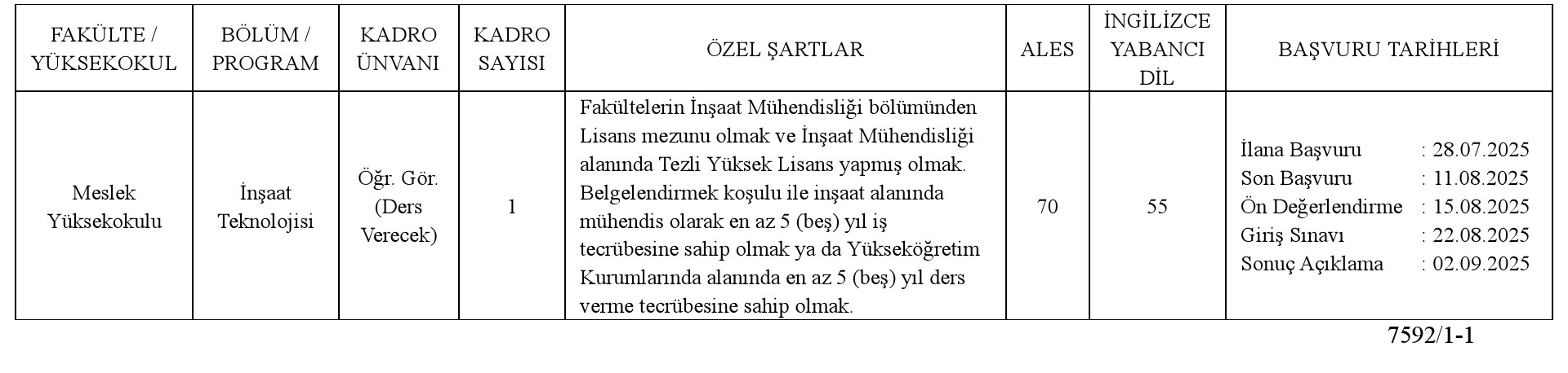 İlan Giriş : 28 Temmuz 2025 01:50, Son Güncelleme : 28 Temmuz 2025 00:43
