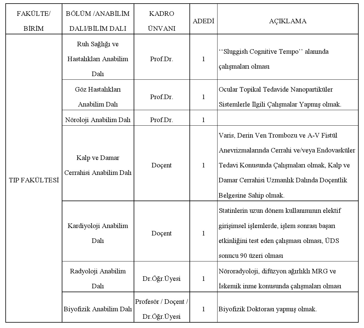 ÖĞRETİM ÜYESİ ALIM İLANI