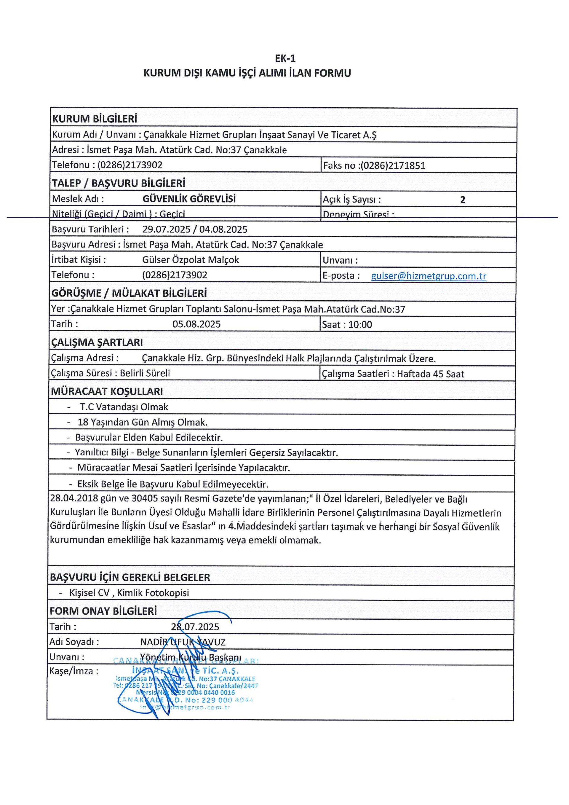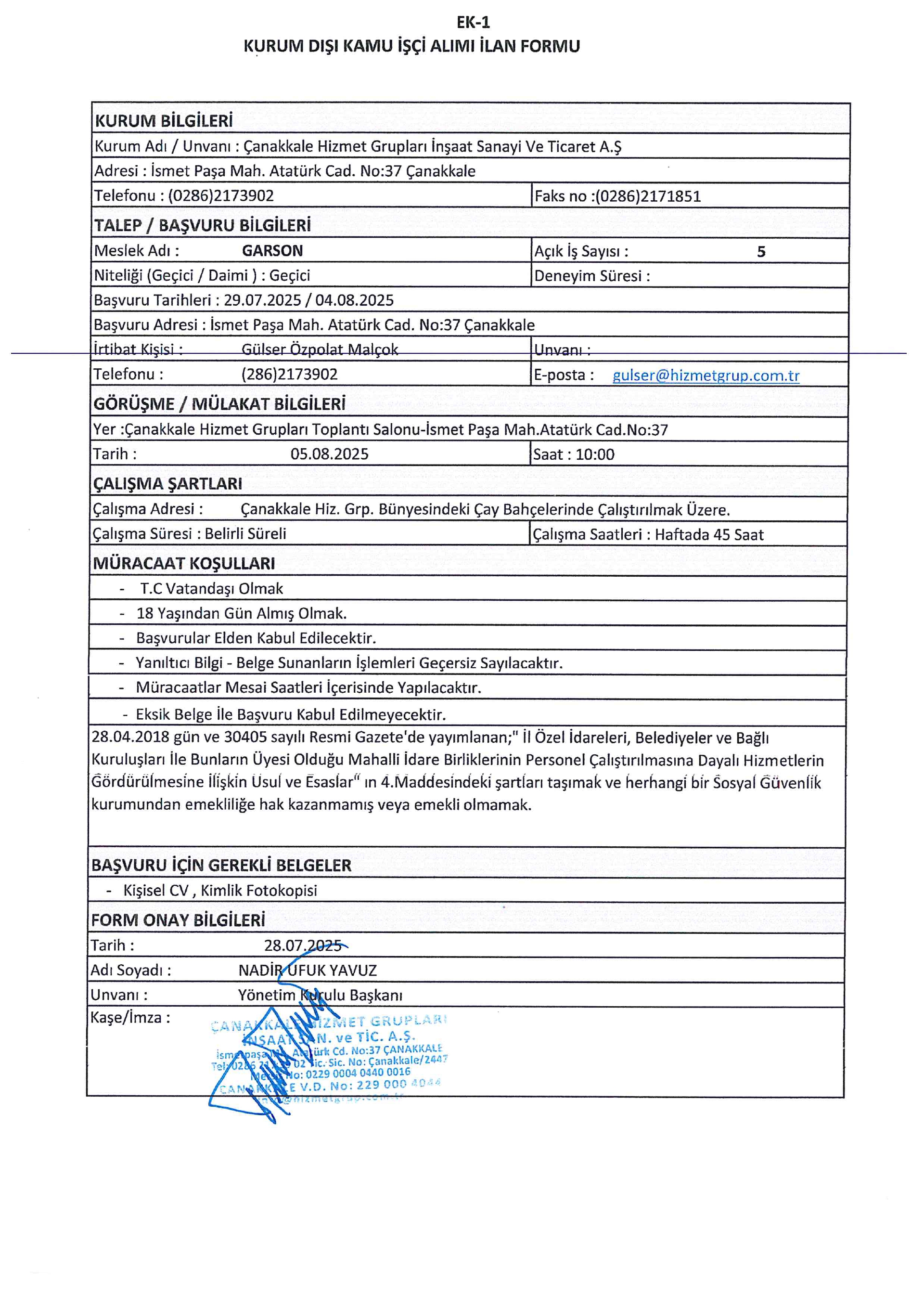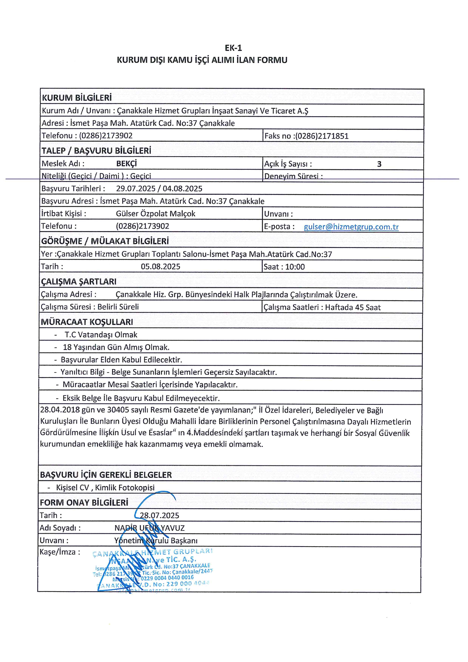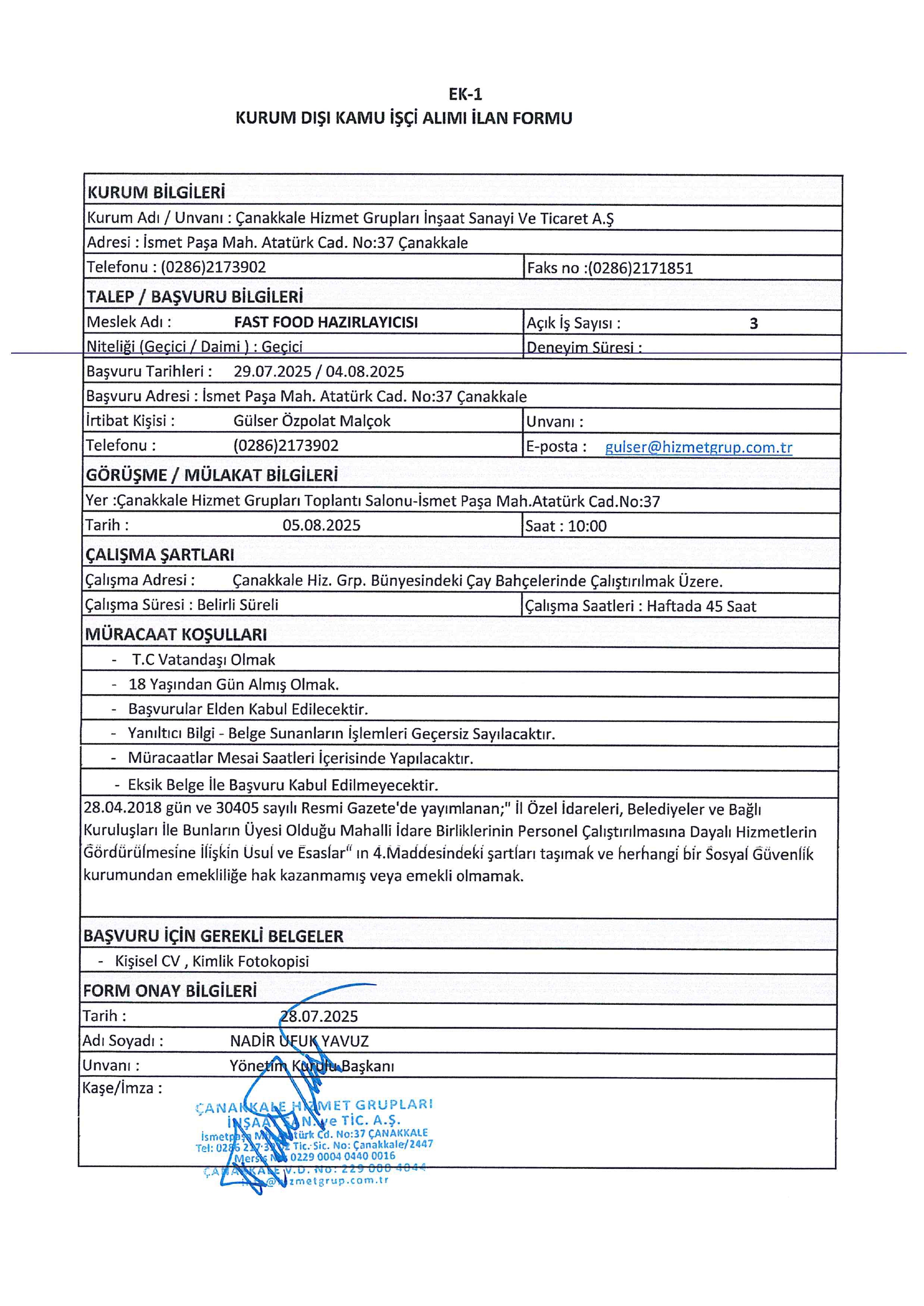 Çanakkale Hizmet Grupları Geçici 13 İşçi Alacak. Son başvuru tarihi 04 ağustos 2025