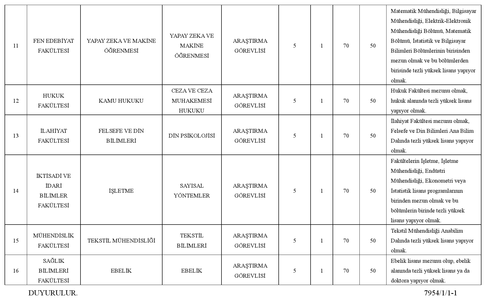 ÖĞRETİM GÖREVLİSİ ALIM İLANI