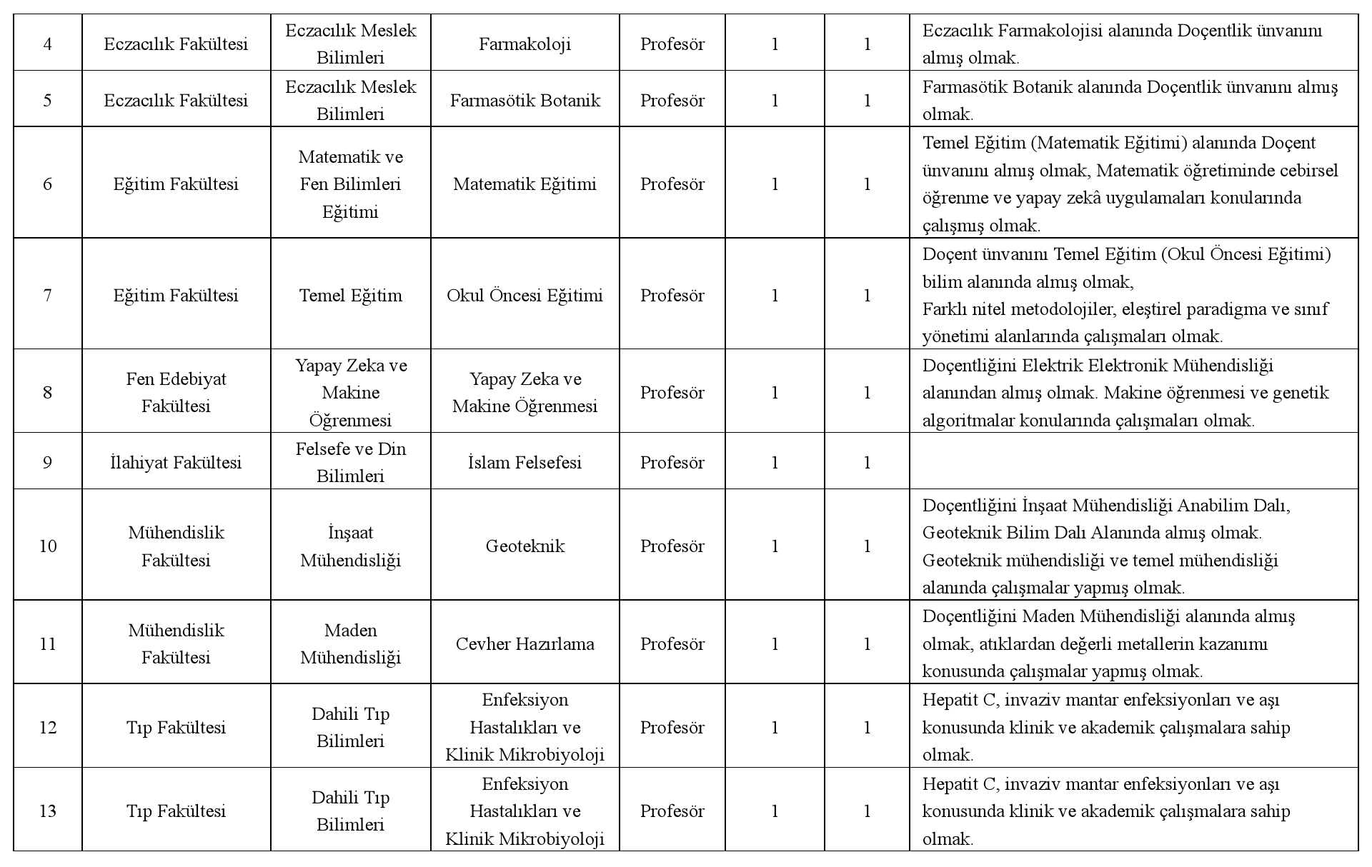 ÖĞRETİM ÜYESİ ALIM İLANI