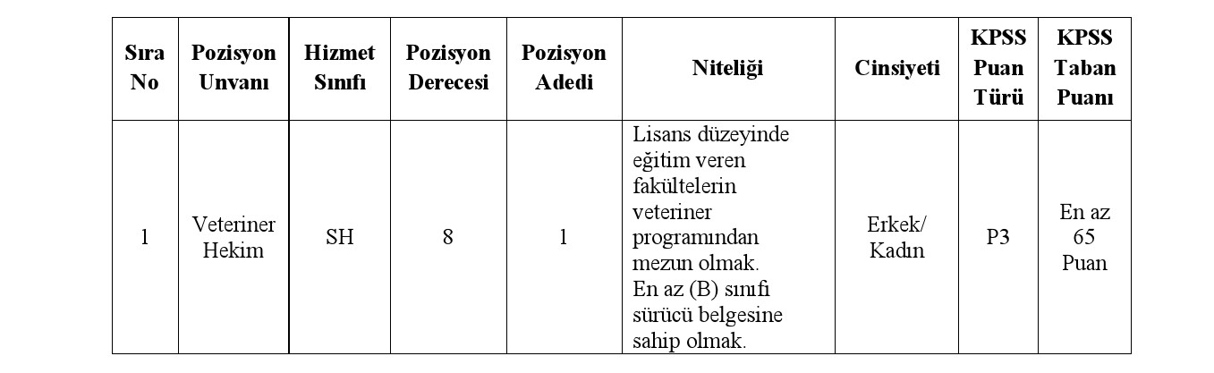 Bitlis ili Adilcevaz Belediye Başkanlığı bünyesinde 5393 sayılı Belediye Kanununun 49 uncu maddesi ile Mahalli İdarelere İlk Defa Atanacaklara Dair Sınav ve Atama Yönetmeliği hükümlerine göre aşağıda unvanı, sınıfı, derecesi, adedi, nitelikleri, KPSS puan türü, KPSS taban puanı ve diğer şartları taşımak kaydıyla, belirtilen boş pozisyona tam zamanlı sözleşmeli personel alınacaktır.