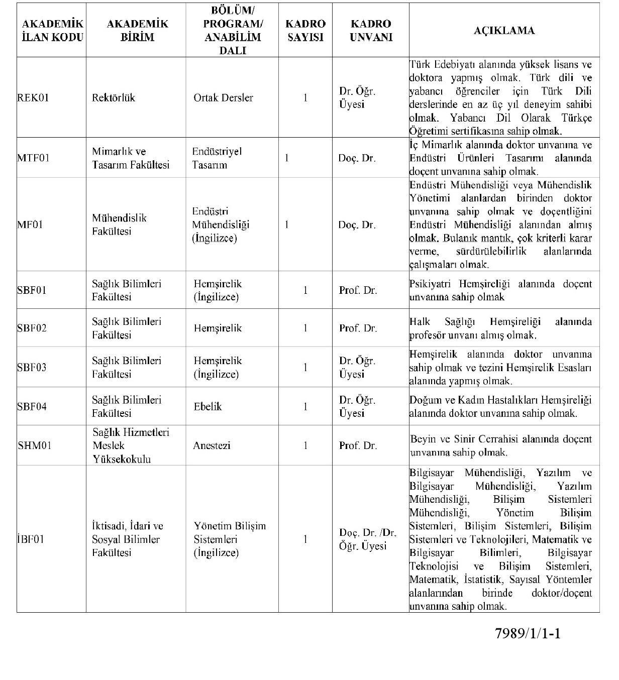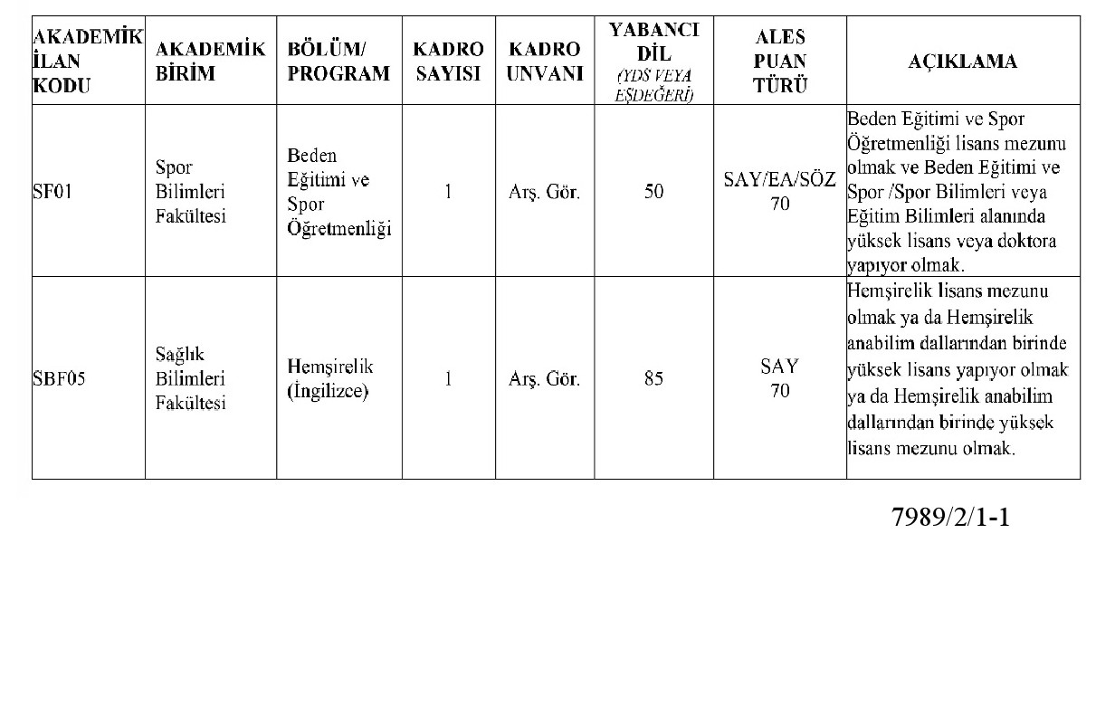 ÖĞRETİM ÜYESİ ALIM İLANI
