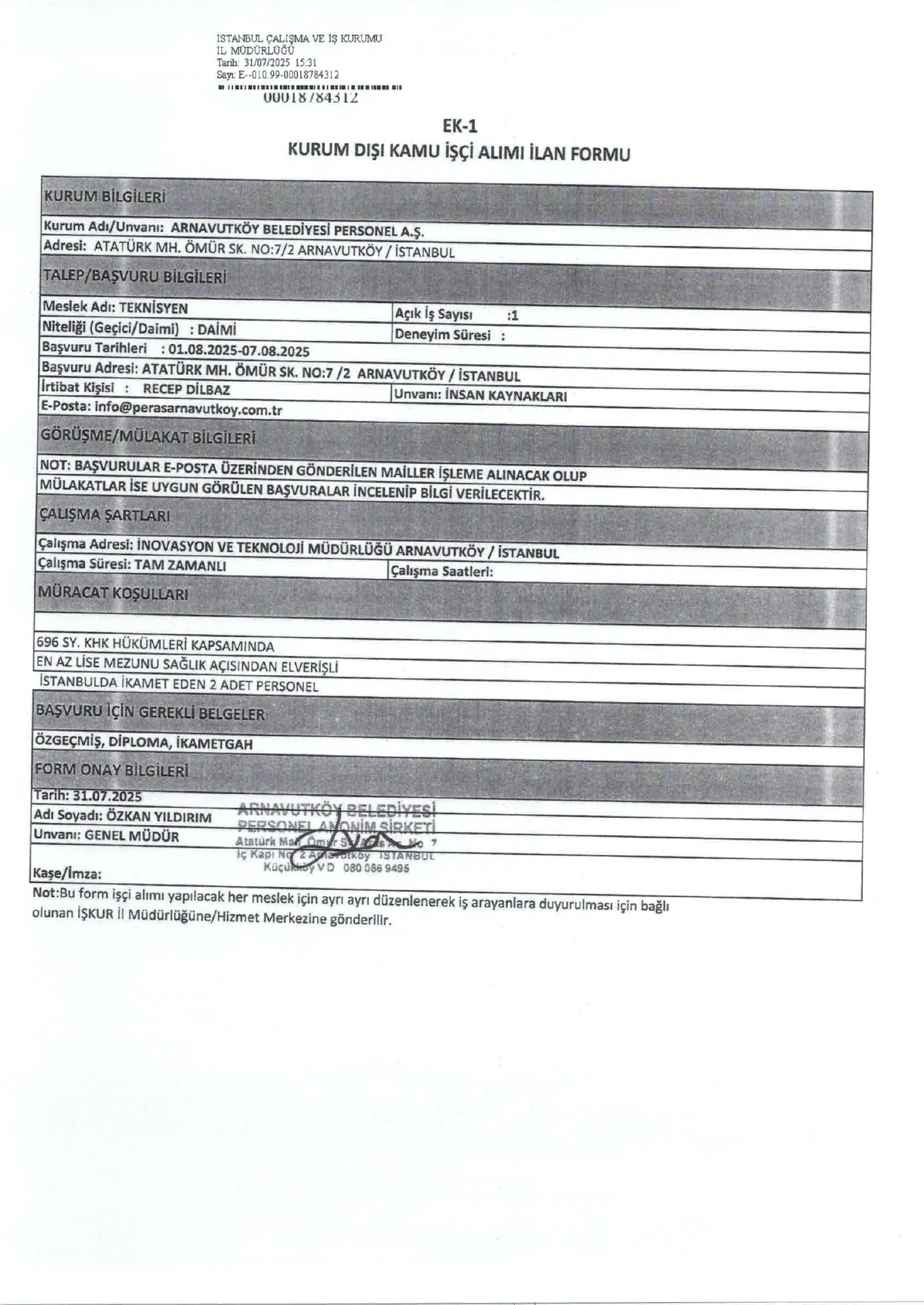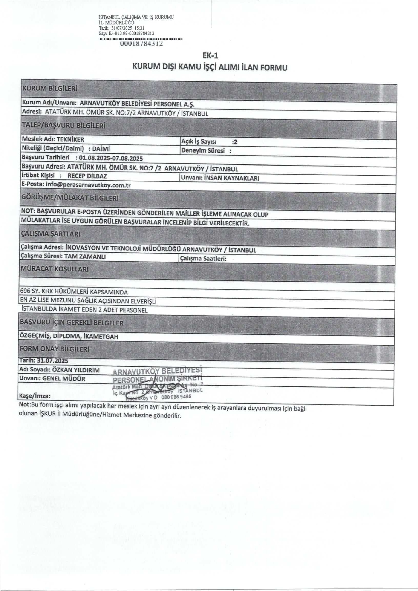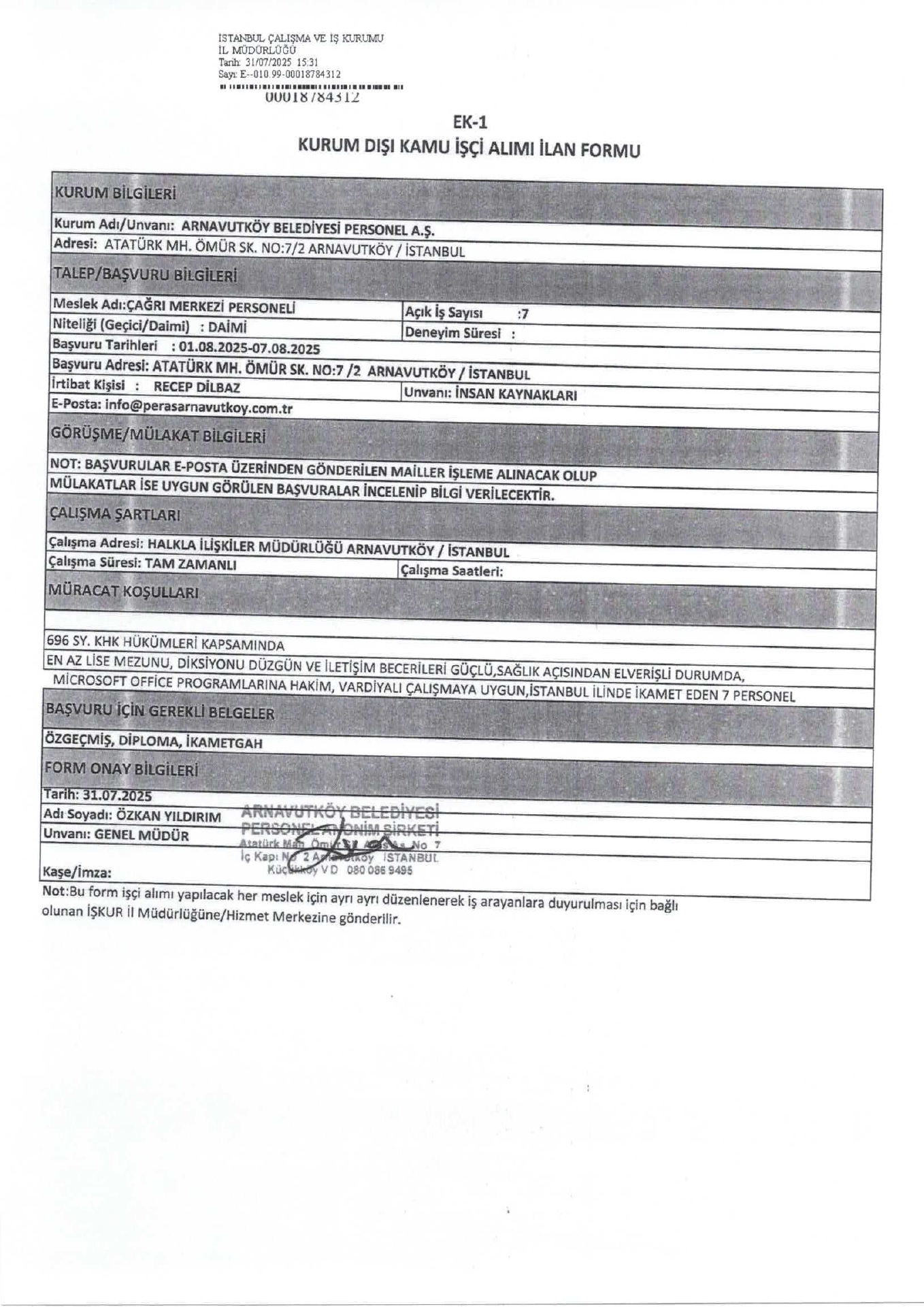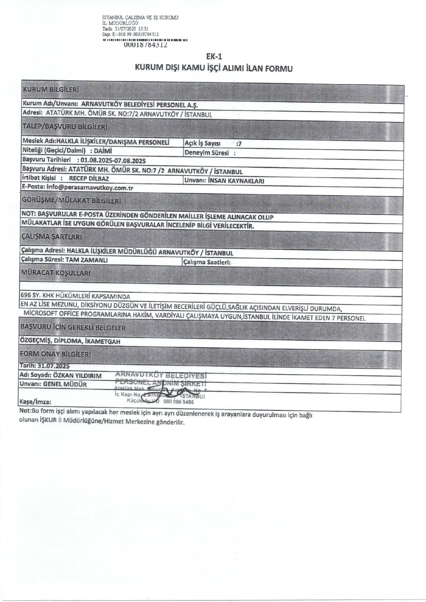 İstanbul Arnavutköy Belediyesi 22 İşçi Alacak. Son başvuru tarihi 7 ağustos 2025