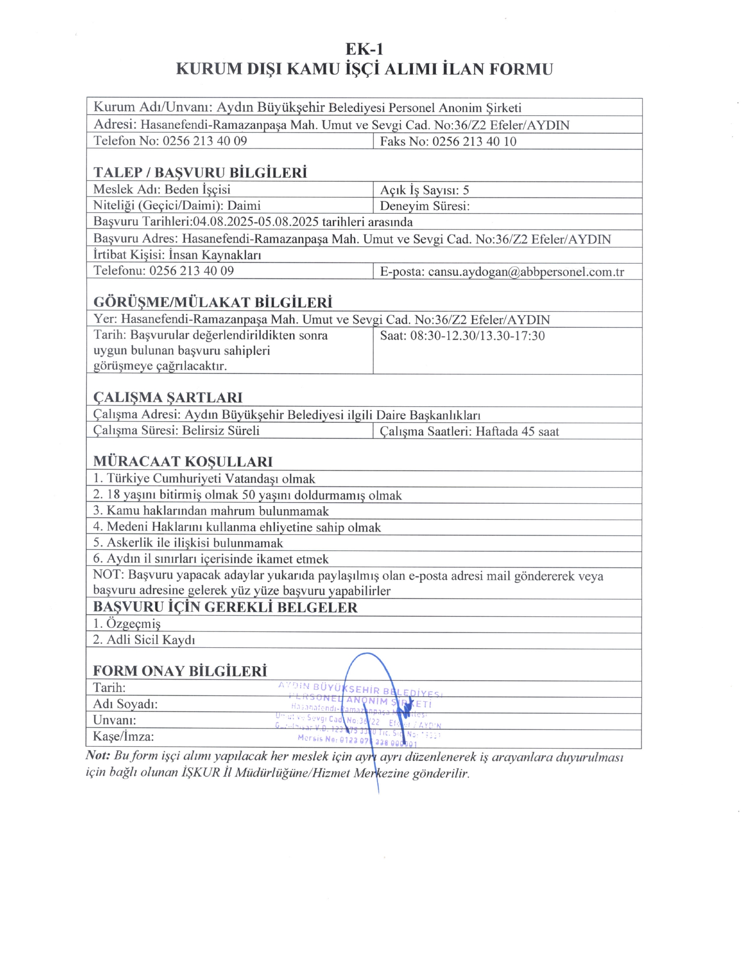 Aydın Büyükşehir Belediyesi 5 İşçi Alacak. Son başvuru tarihi 5 ağustos 2025