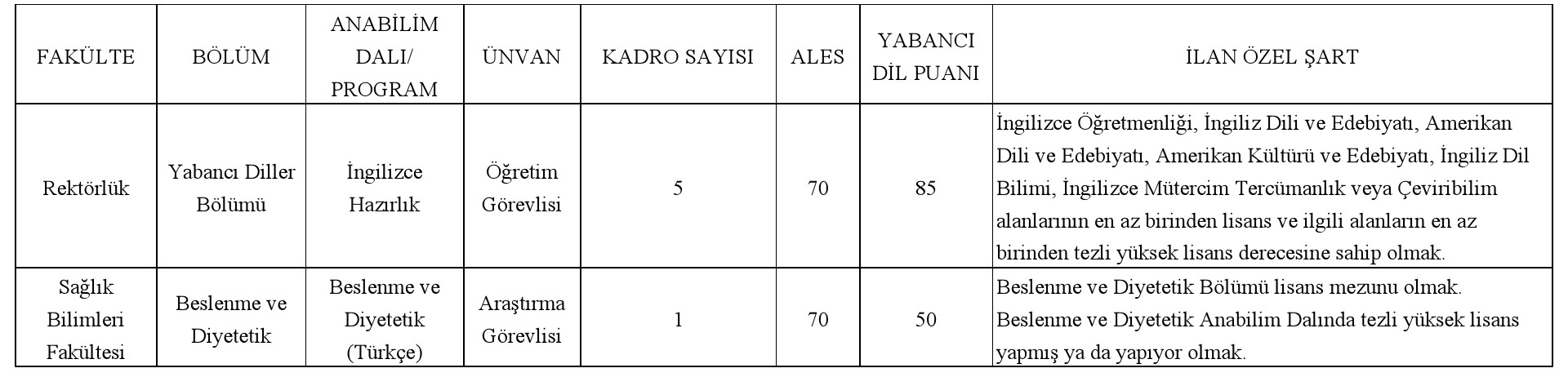 Üniversitemizin aşağıda isimleri belirtilen birimlerine, 2547 sayılı Yükseköğretim Kanunu'nun 33. maddesi ve "Öğretim Üyesi Dışındaki Öğretim Elemanı Kadrolarına Yapılacak