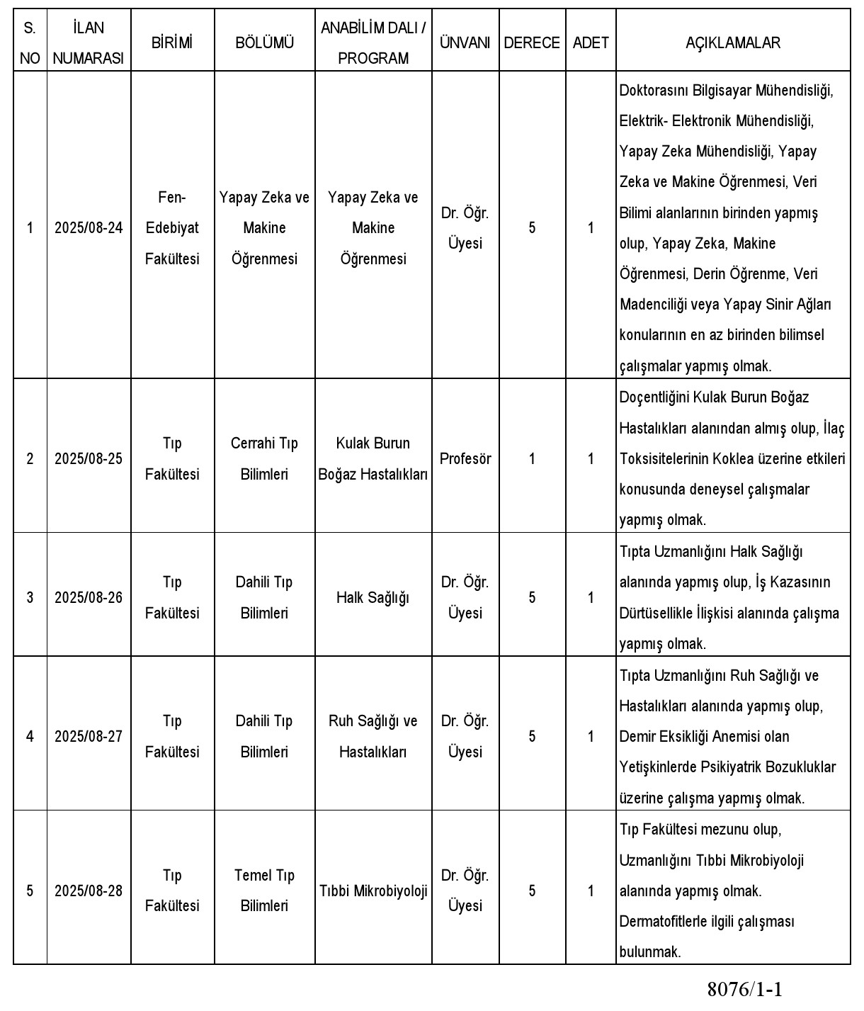 Amasya Üniversitesi Öğretim Üyesi Alım İlanı. Son başvuru tarihi 18 ağustos 2025