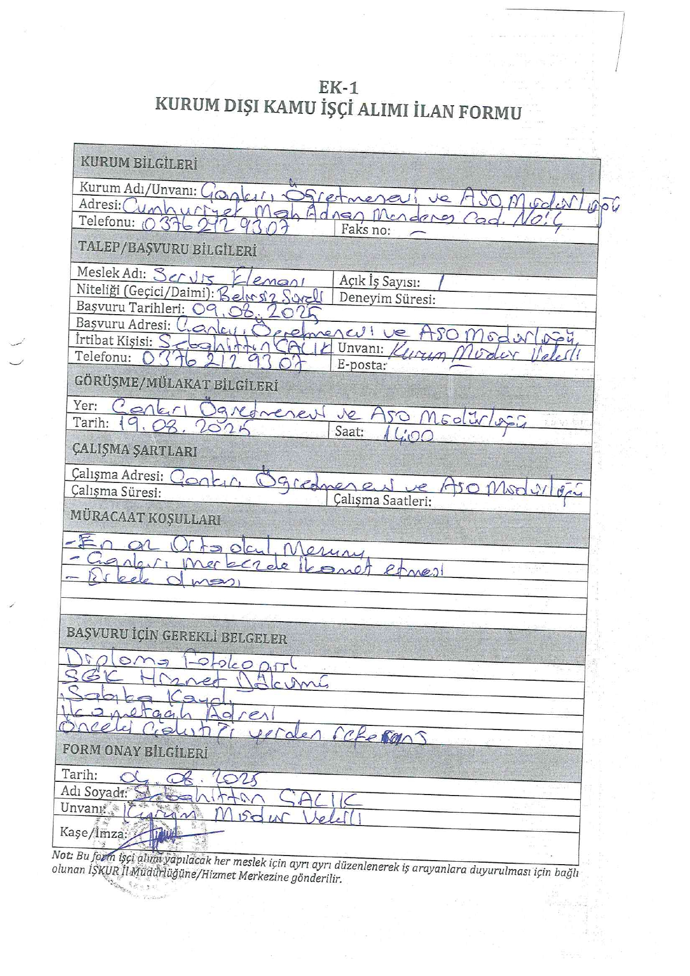 Çankırı Öğretmenevi 1 İşçi Alacak