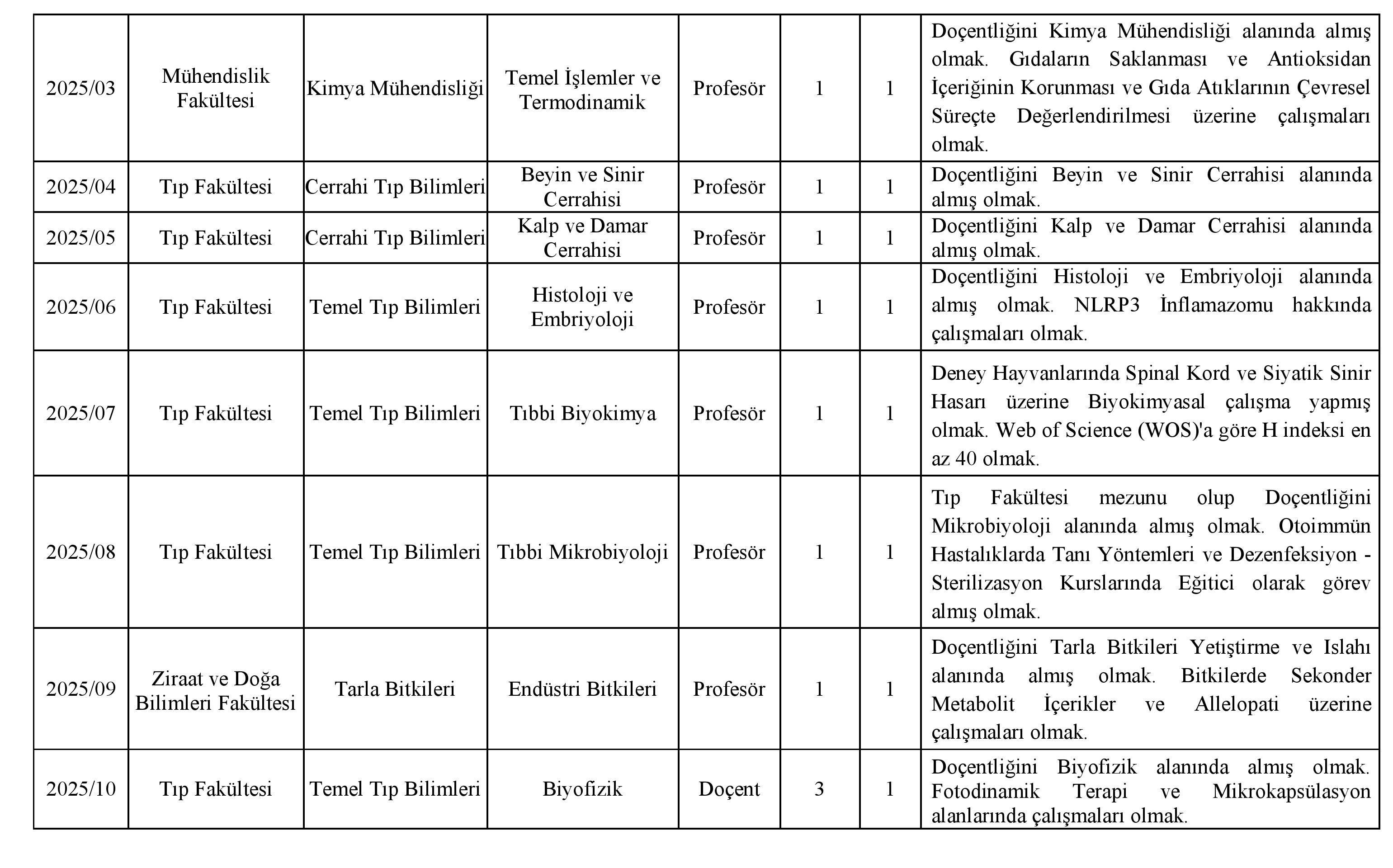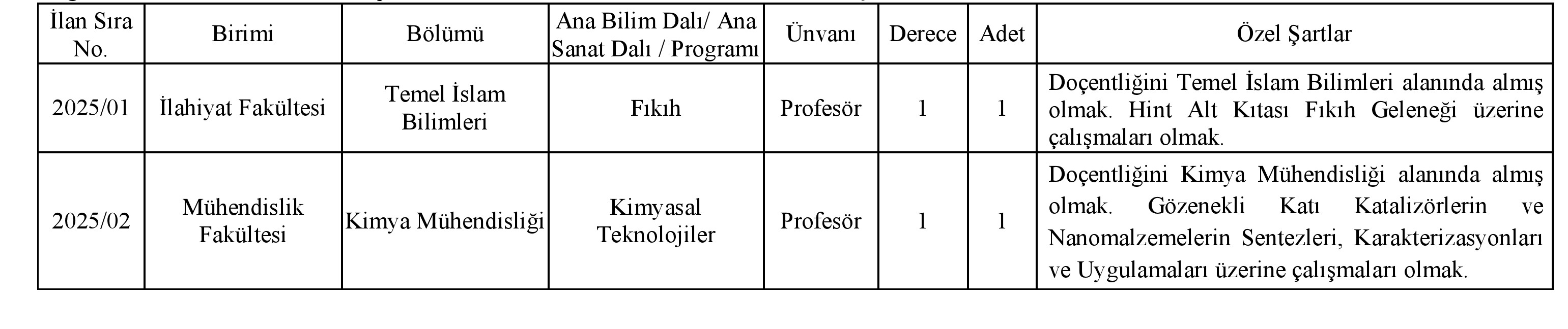 - Üniversitenin uygun görmesi halinde her aşamada ilanın tamamı veya bir bölümü iptal edilebilir.