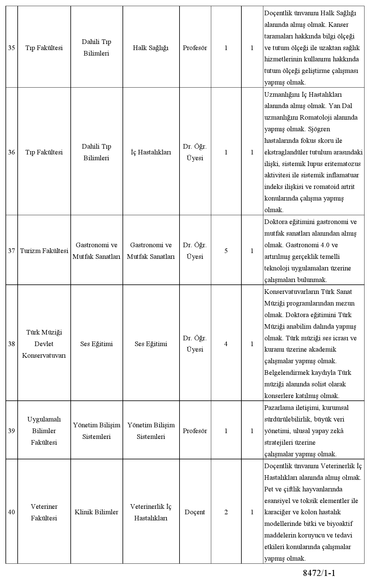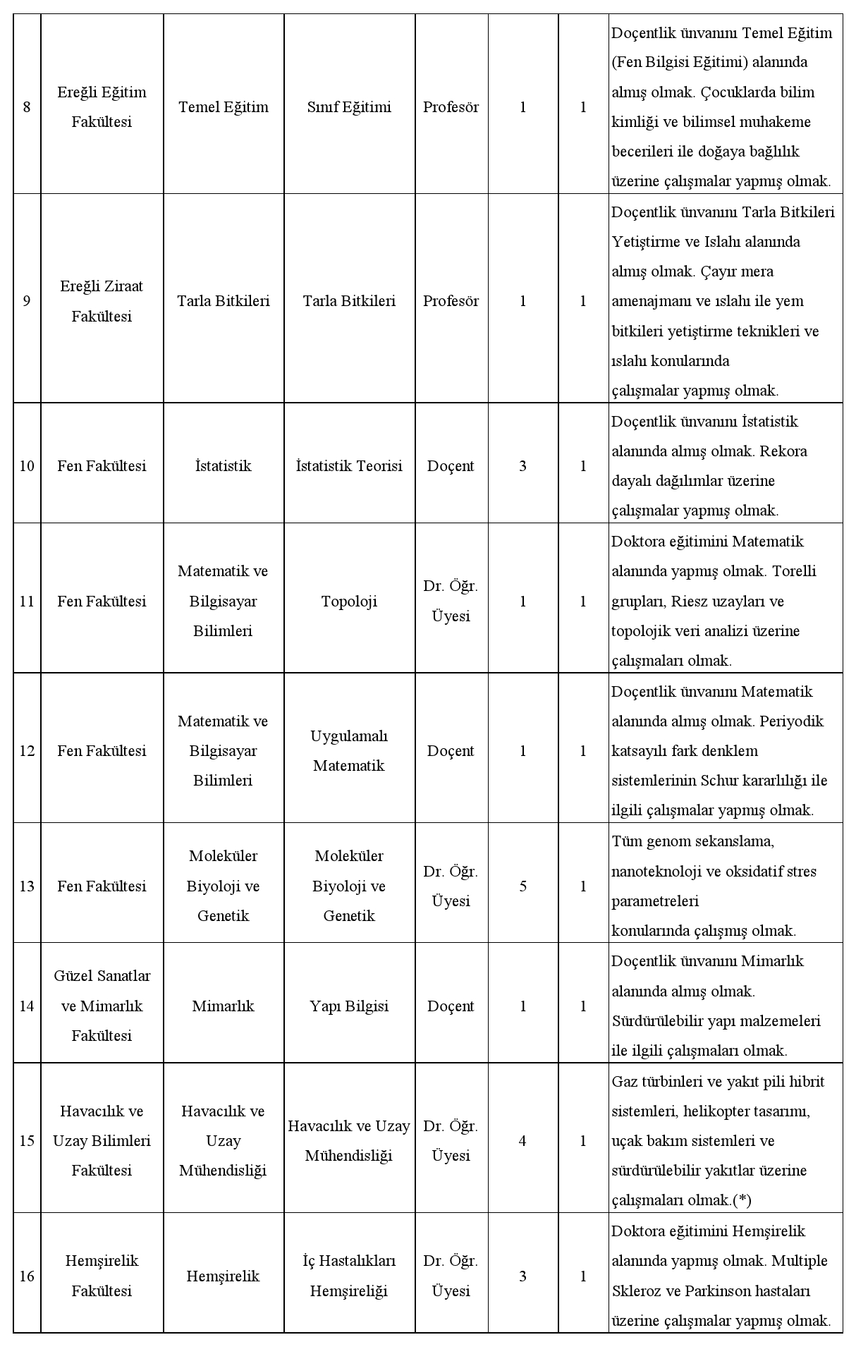 7. İlan edilen kadrolara müracaat eden adaylardan, ilan edilen kadronun anabilim dalı ile doçentlik, doktora, uzmanlık veya sanatta yeterlik alanları farklı olan adayların başvuruları Üniversite Yönetim Kurulunda görüşüldükten sonra nihai karar verilecek olup, uygun görülmeyenlerin başvuruları geçersiz sayılacaktır.