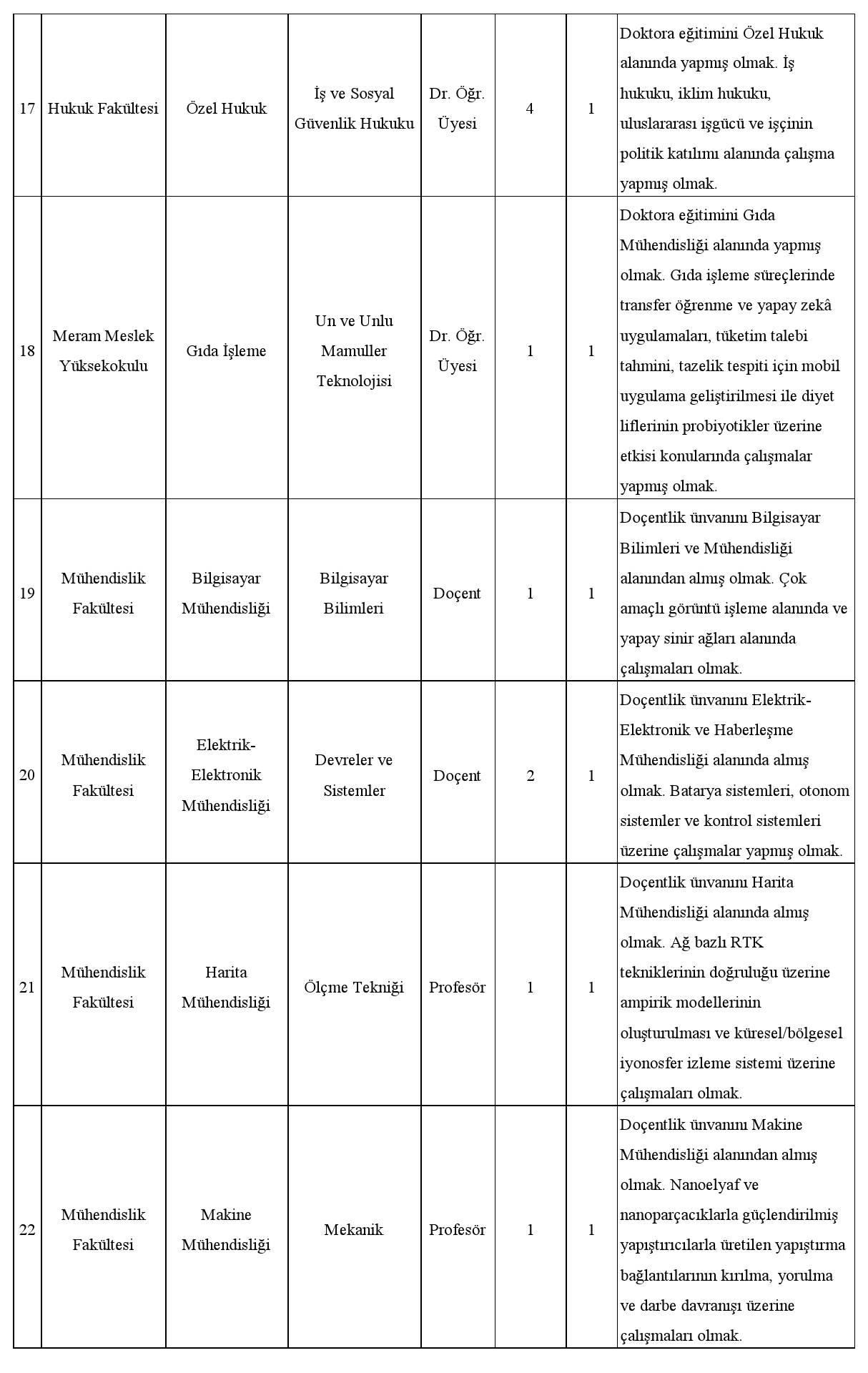 Necmettin Erbakan Üniversitesi Öğretim Üyesi Alım İlanı. Son başvuru tarihi 22 ağustos 2025