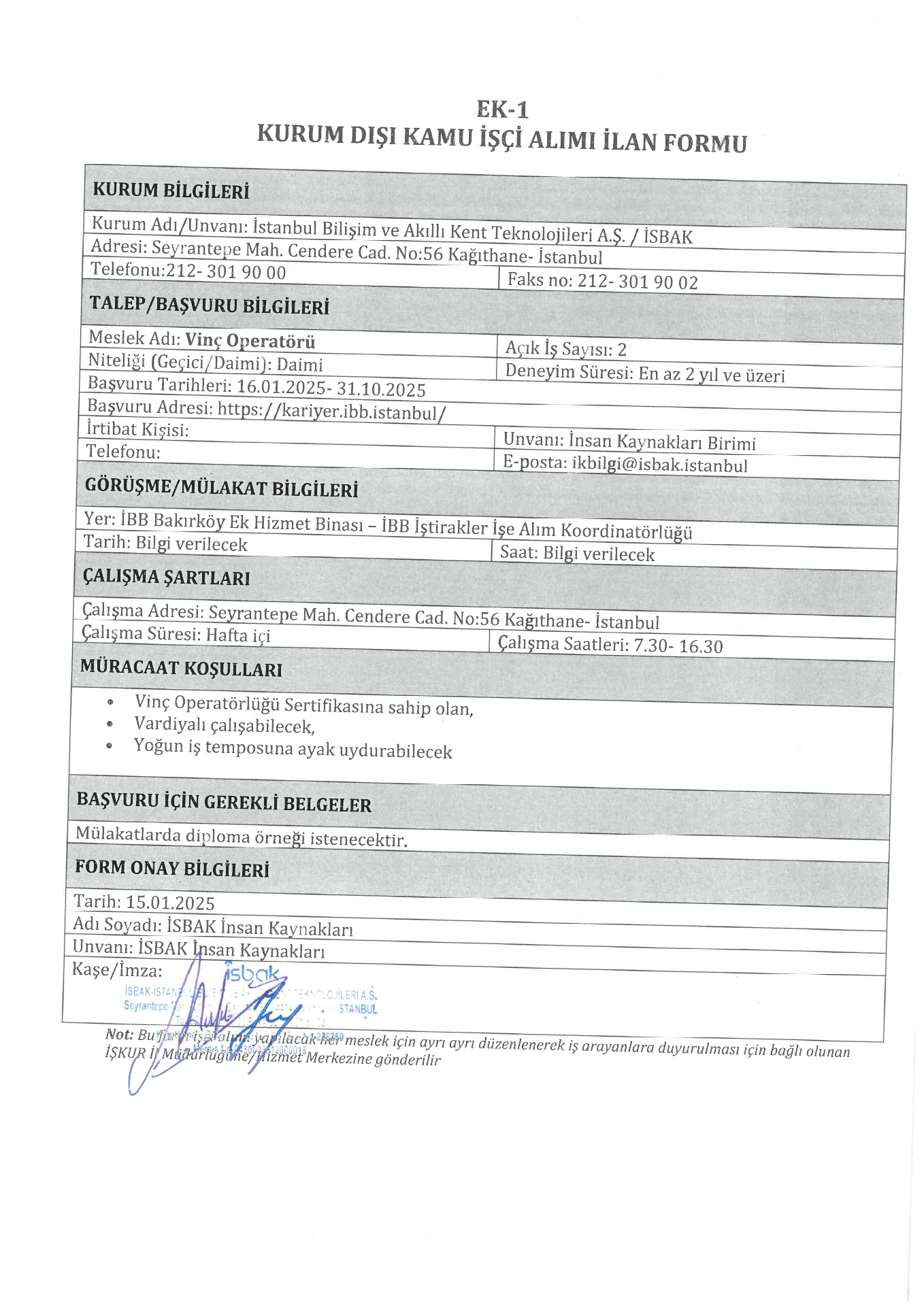 İstanbul Bilişim Akıllı Kent Teknolojileri 2 İşçi Alacak. Son başvuru tarihi 31 Kasım 2025