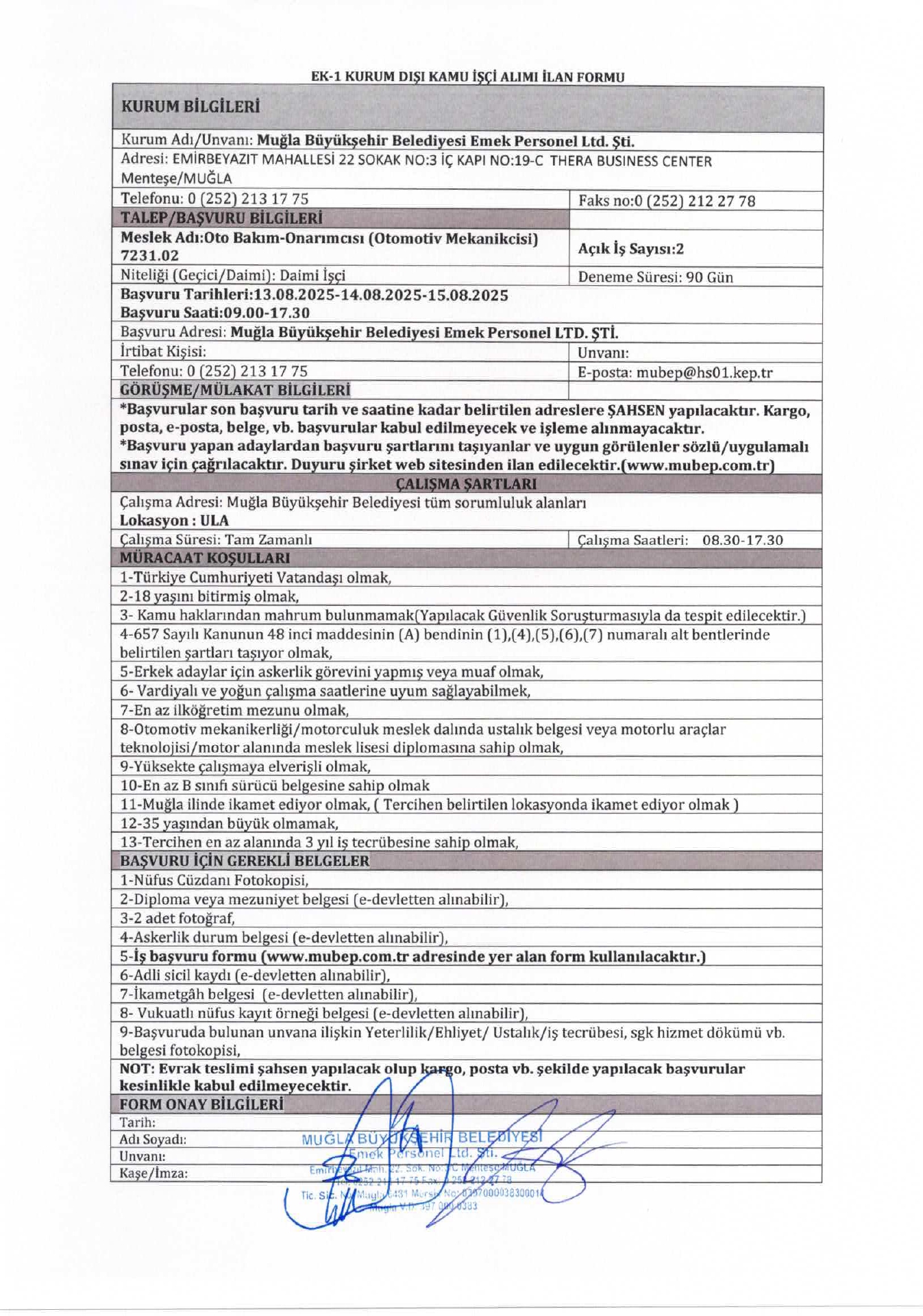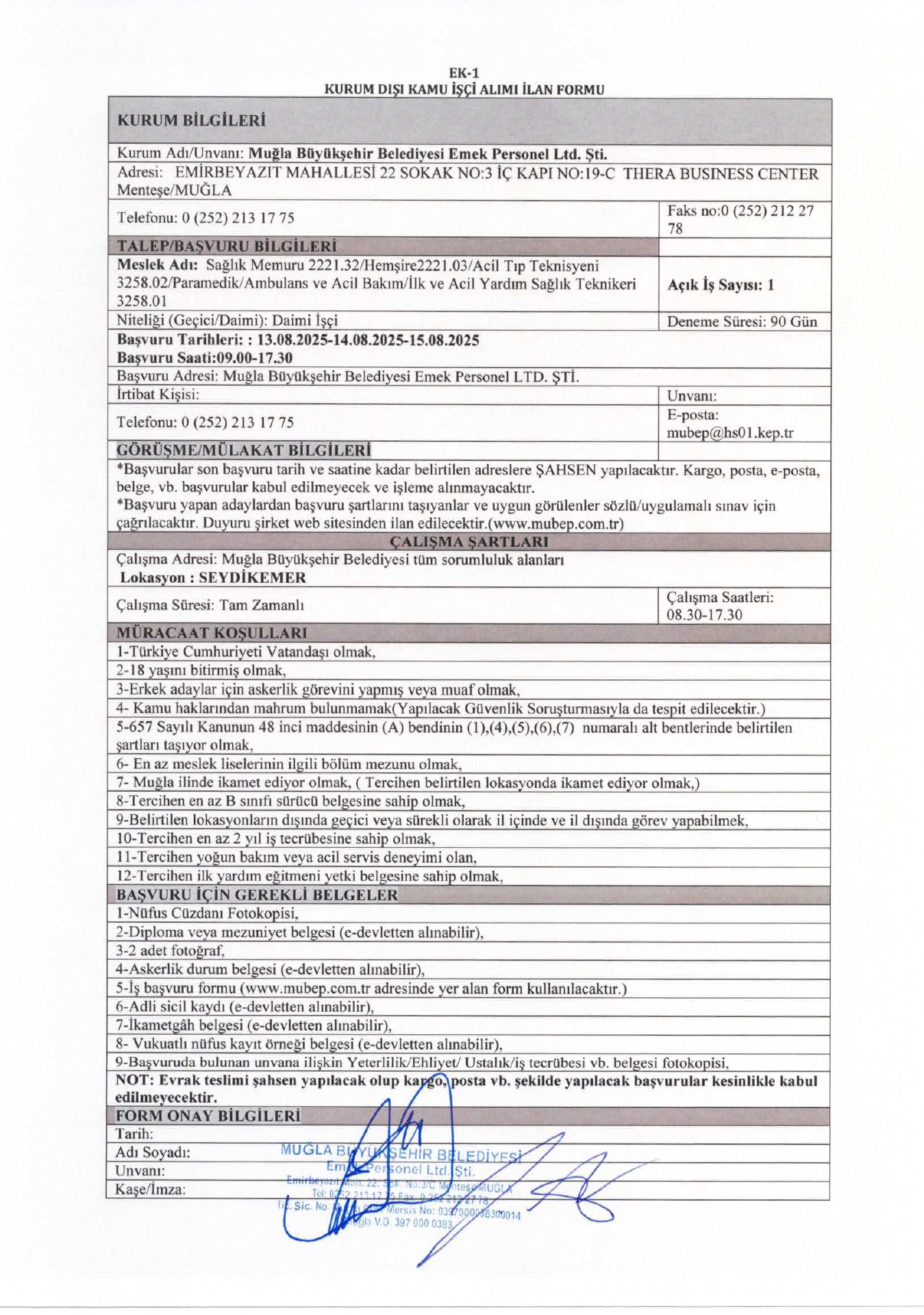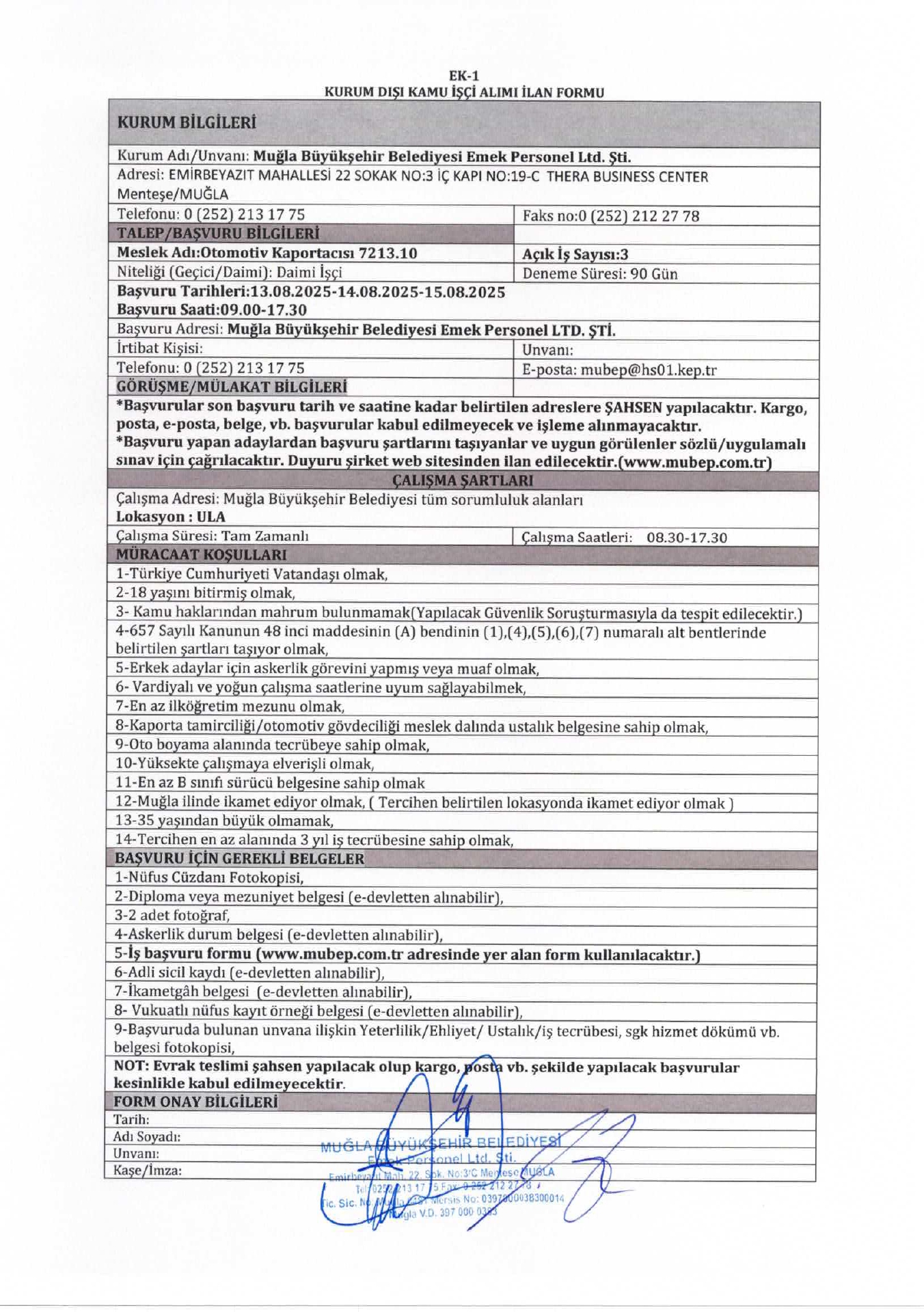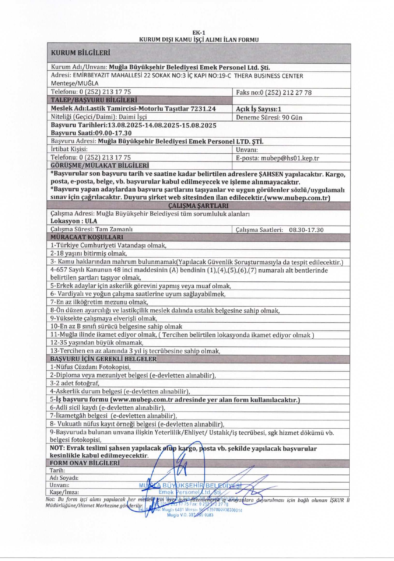 Muğla Büyükşehir Belediyesi 12 İşçi Alacak. Son başvuru tarihi 15 ağustos 2025