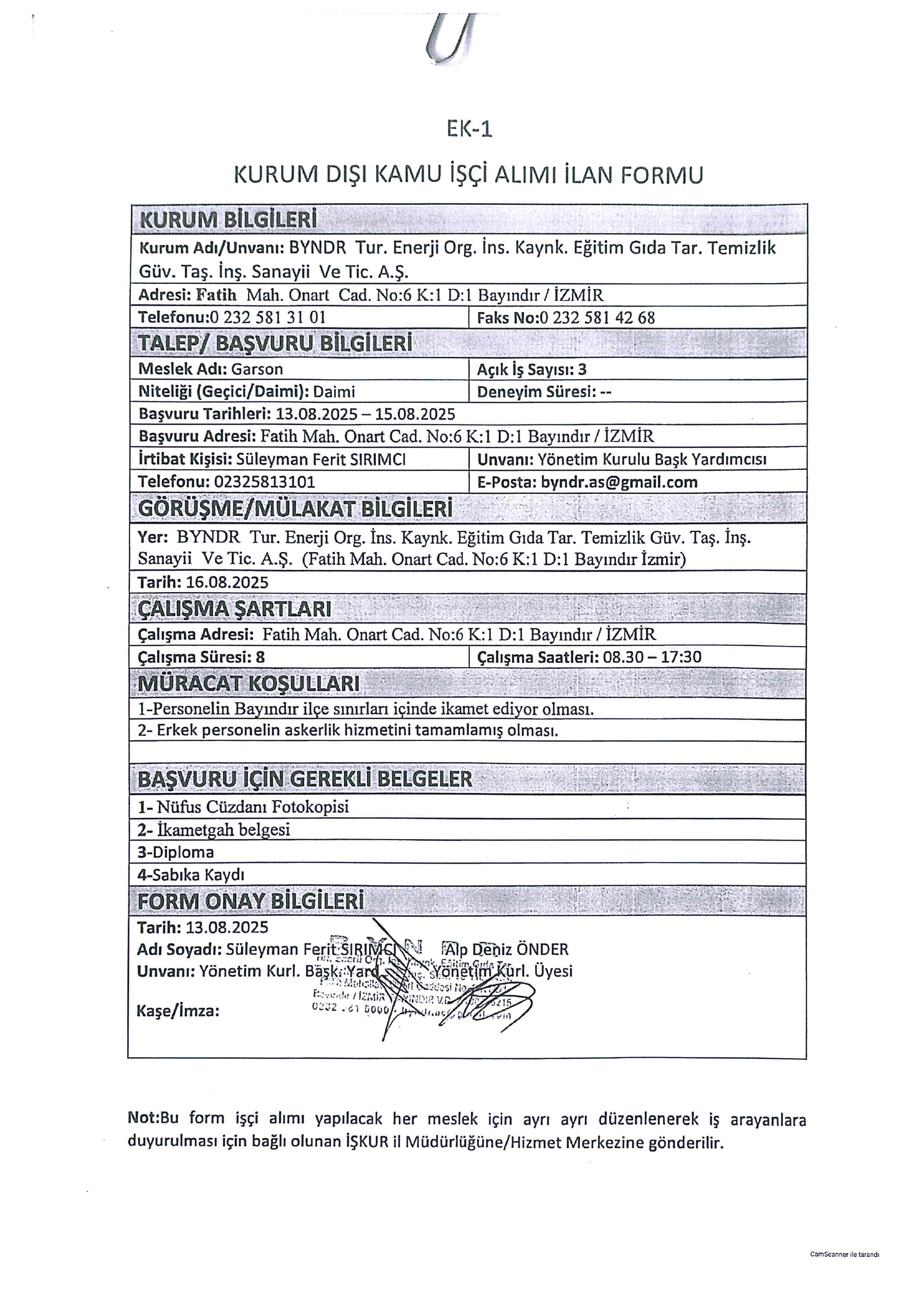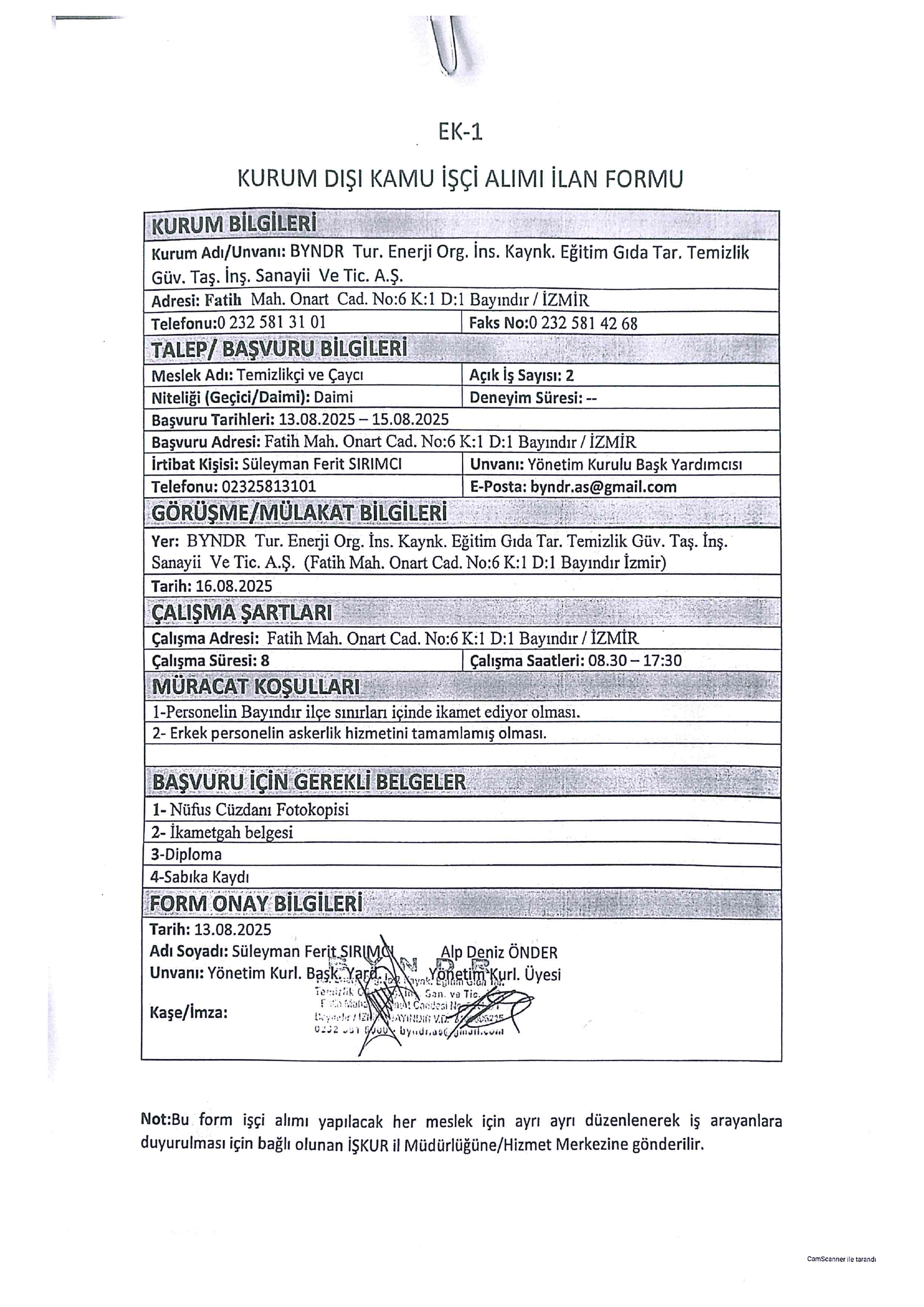 İzmir Byndr Turizm 5 İşçi Alacak. Son başvuru tarihi 15 ağustos 2025