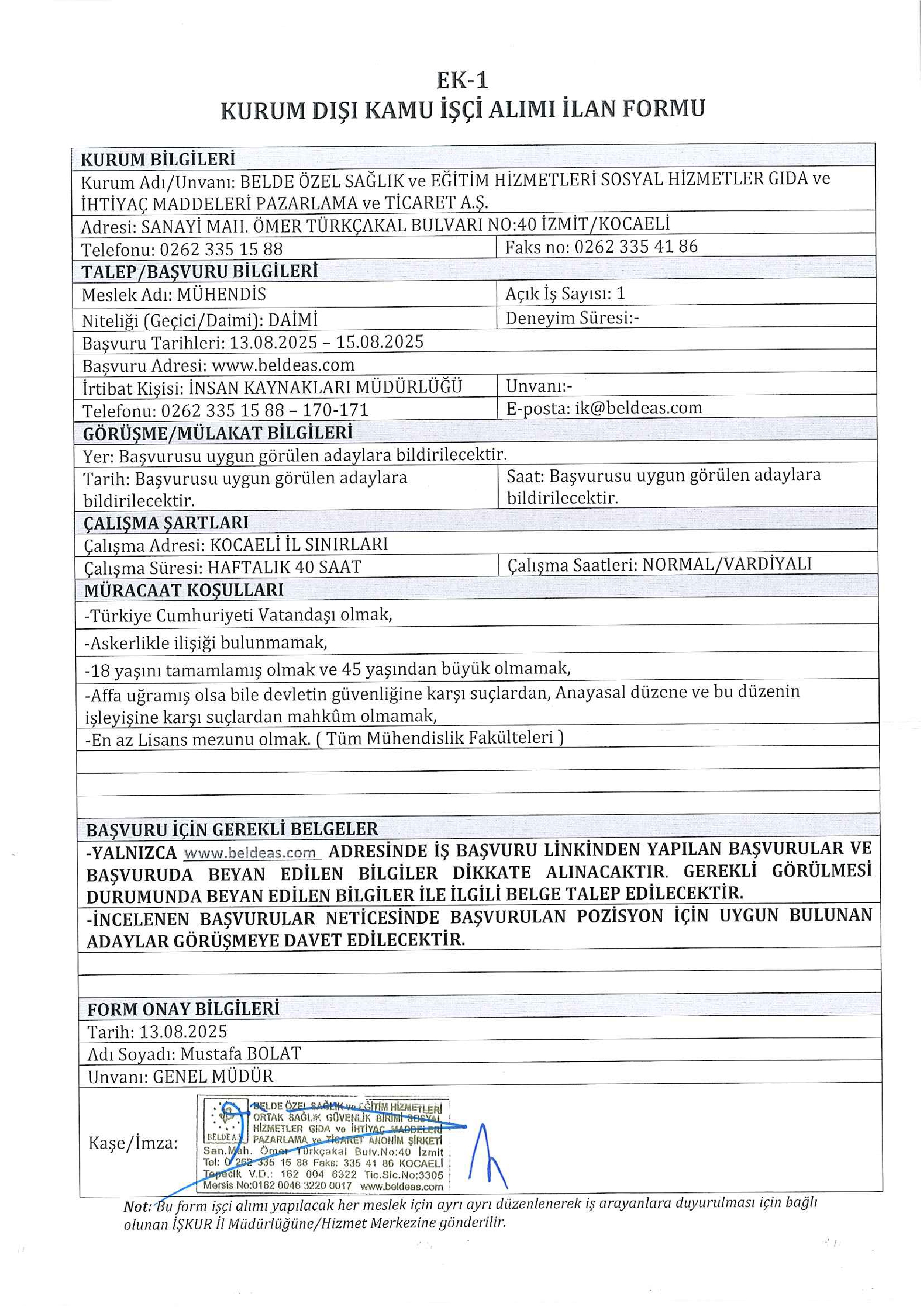 İlan Giriş : 13 Ağustos 2025 23:19, Son Güncelleme : 13 Ağustos 2025 23:28