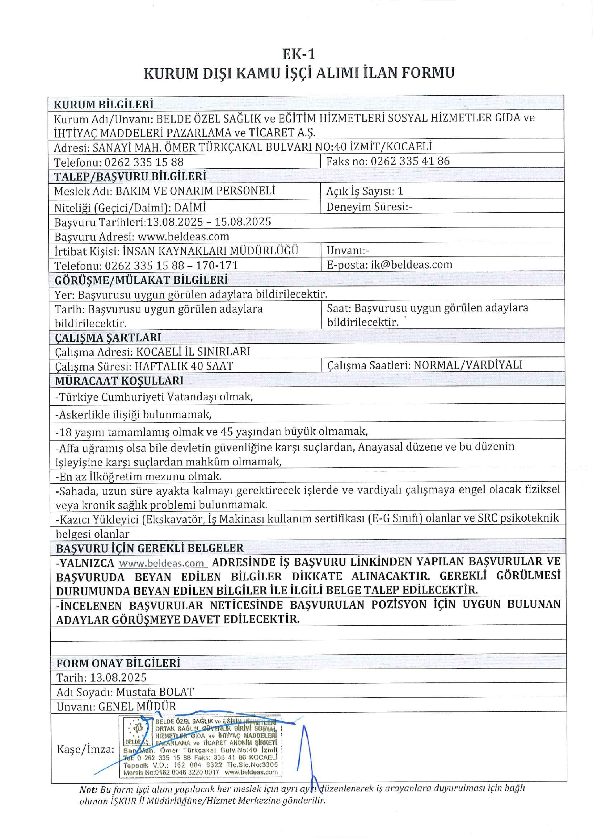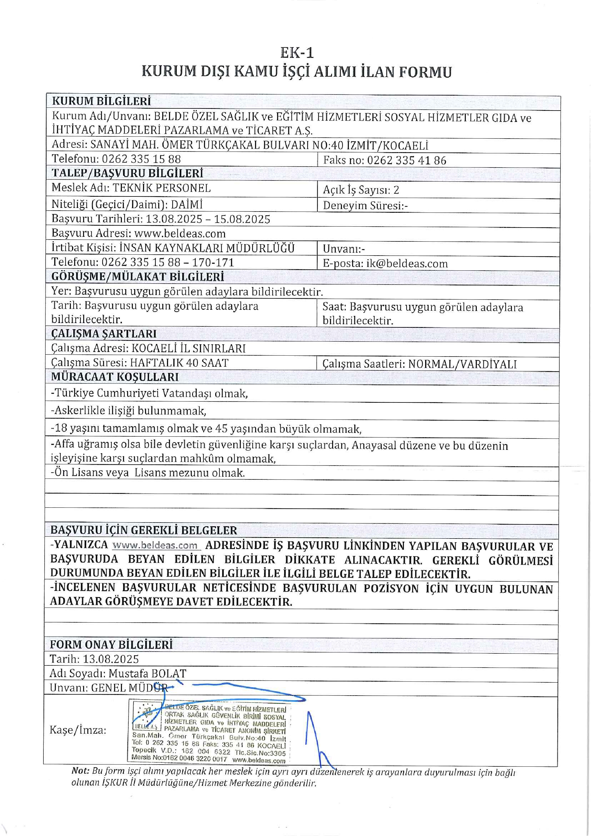 Kocaeli Belde Özel Sağlık Hizmetleri 4 İşçi Alacak. Son başvuru tarihi 15 ağustos 2025