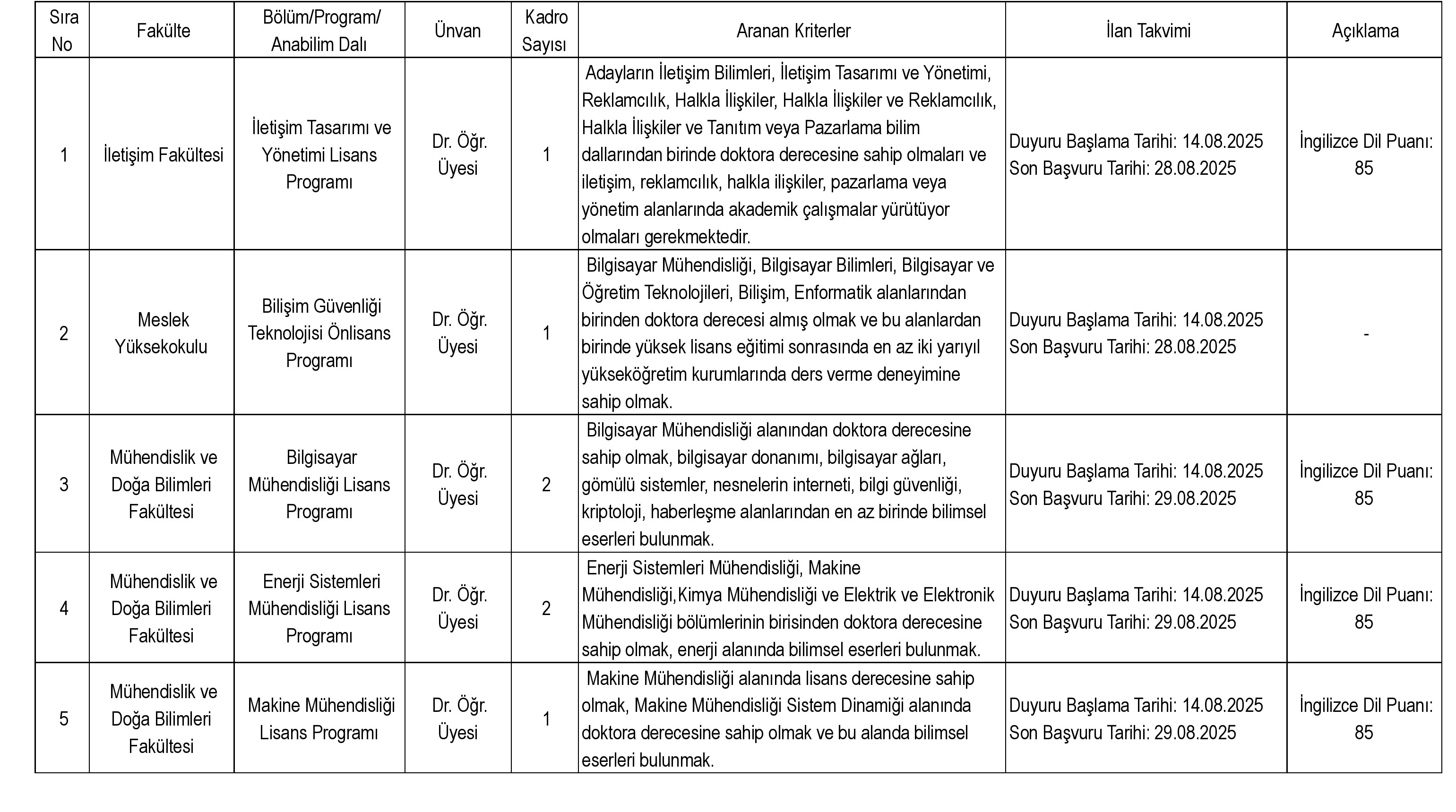 İstanbul Bilgi Üniversitesi Öğretim Üyesi ve Elemanı Alım İlanı. Son başvuru tarihi 28 Ağustos 2025