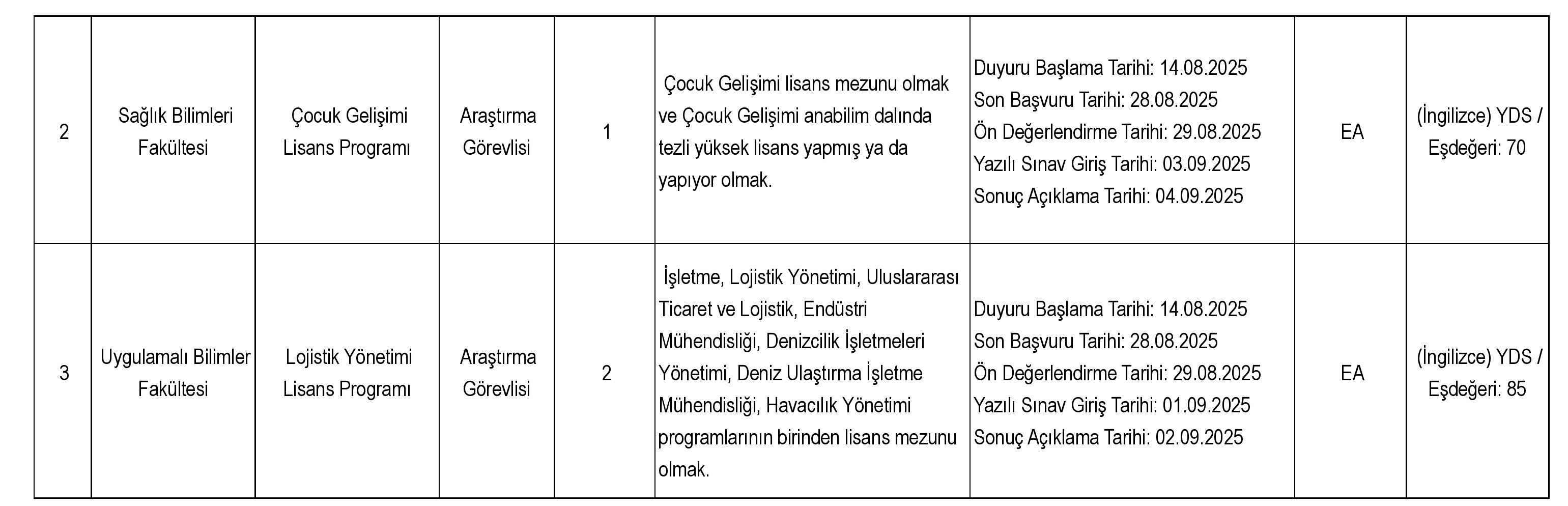 Ön değerlendirme ve değerlendirme sonuçları, üniversitemizin web sitesinde duyurulacaktır.