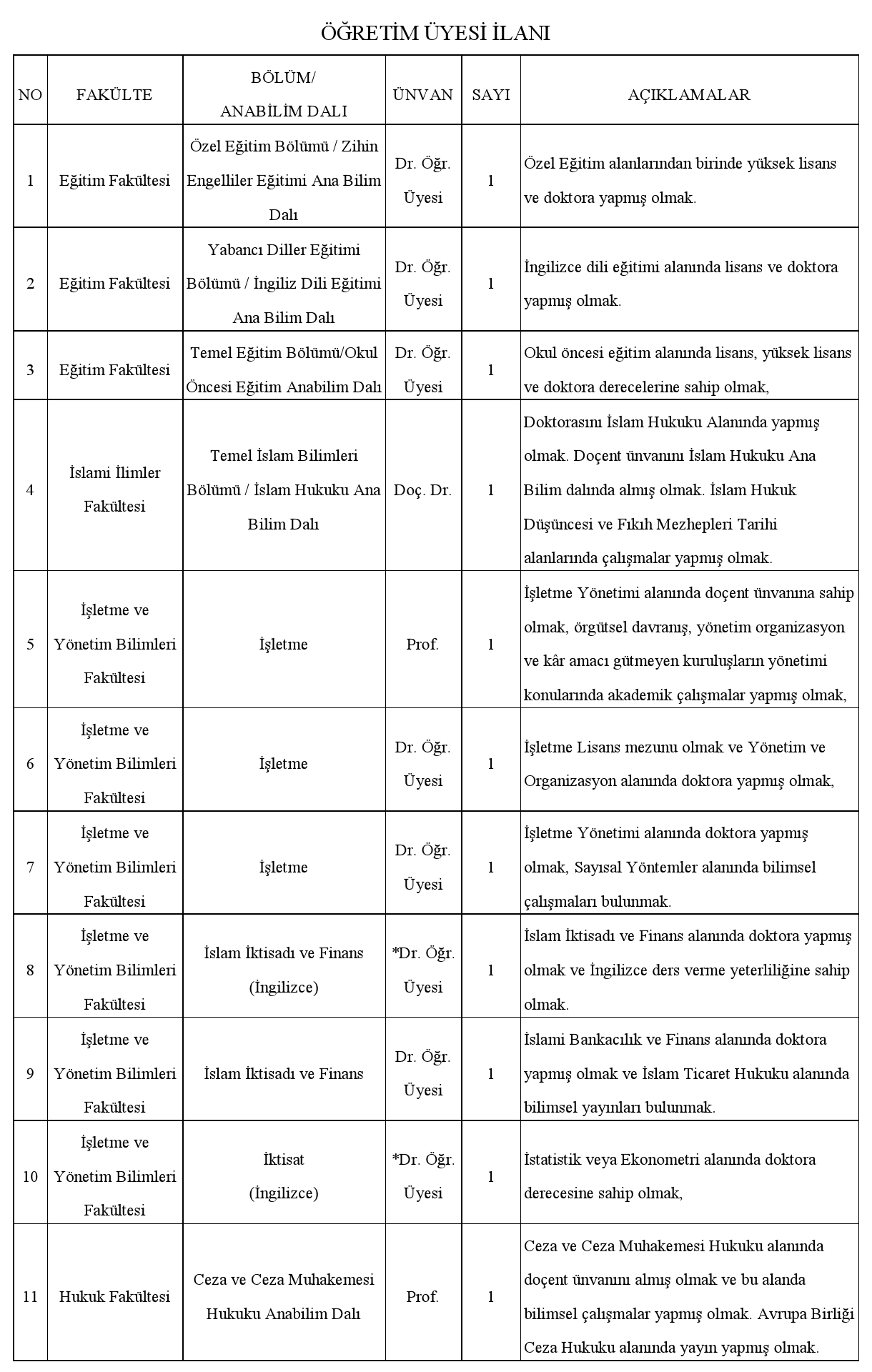 ÖĞRETİM ÜYESİ ALIM İLANI